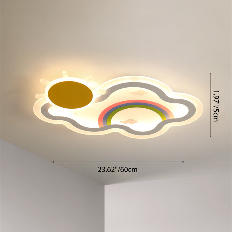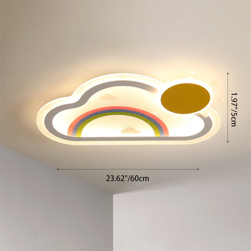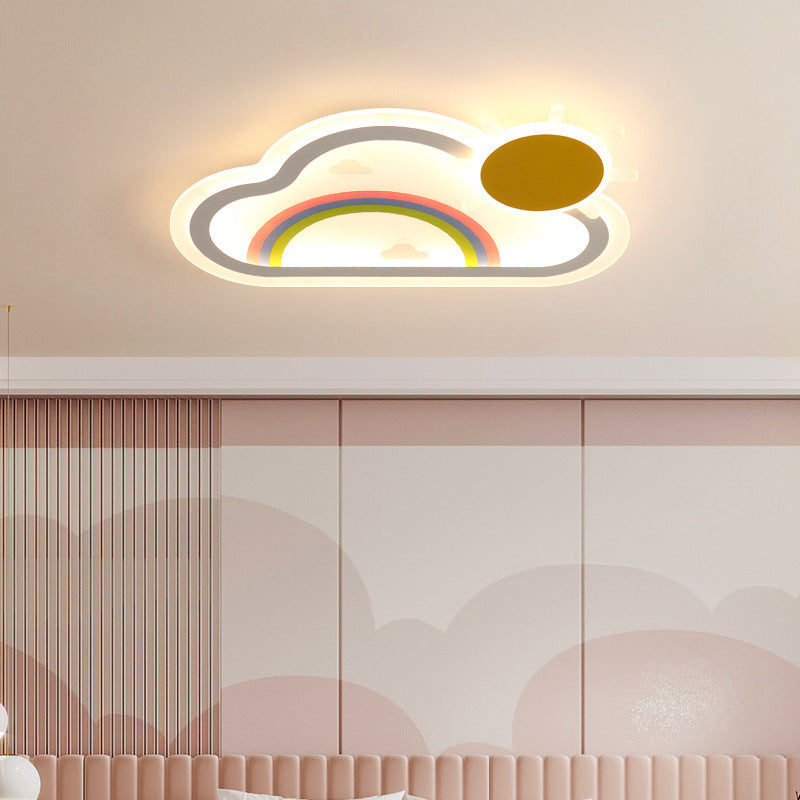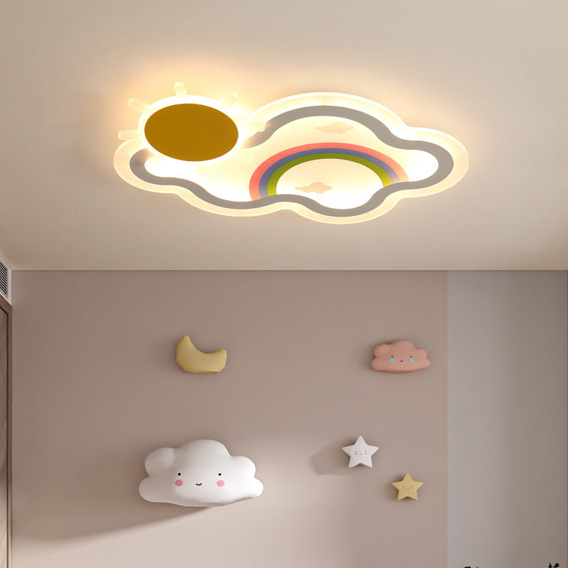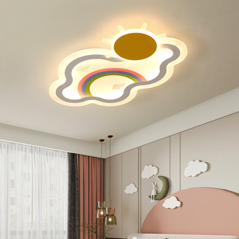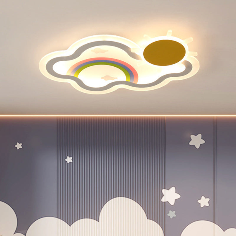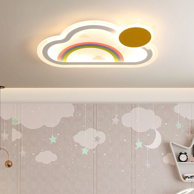 Contemporary Creative Kids Cloud Rainbow Iron Acrylic LED Flush Mount Ceiling Light For Bedroom