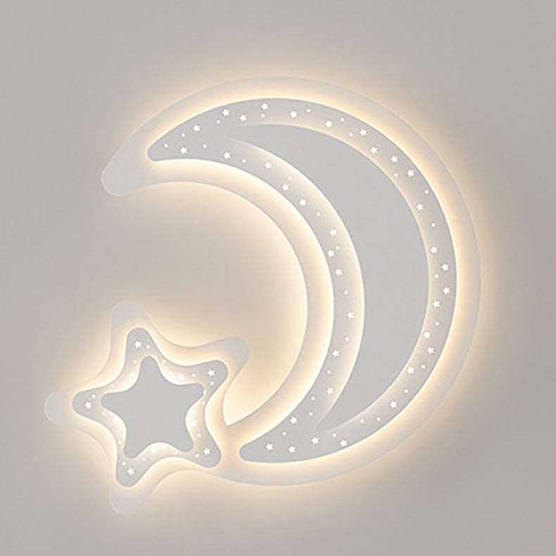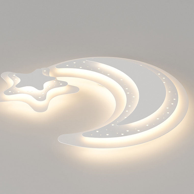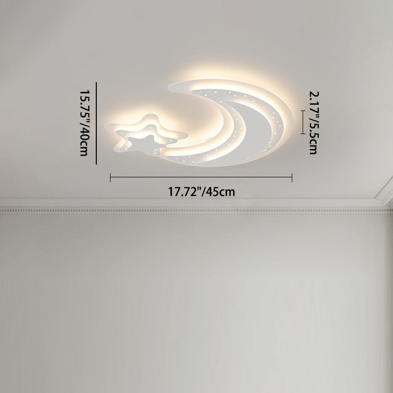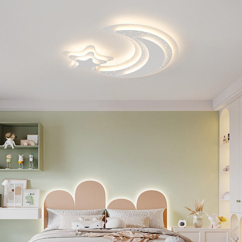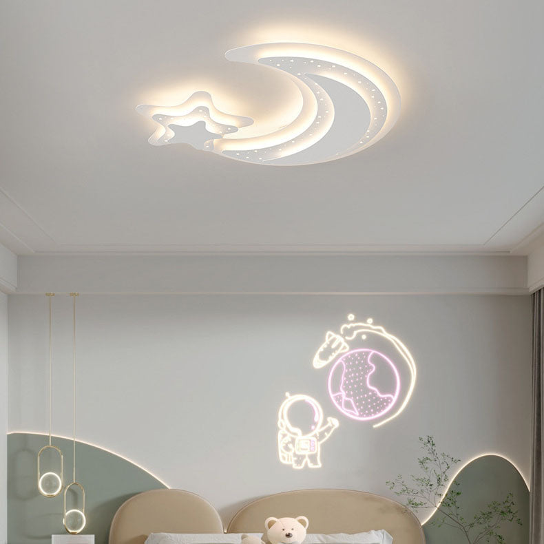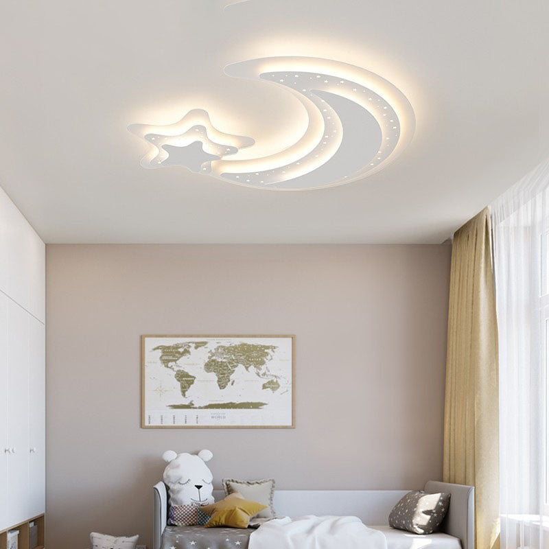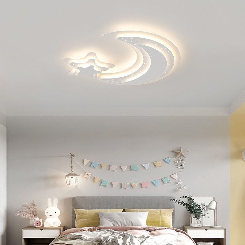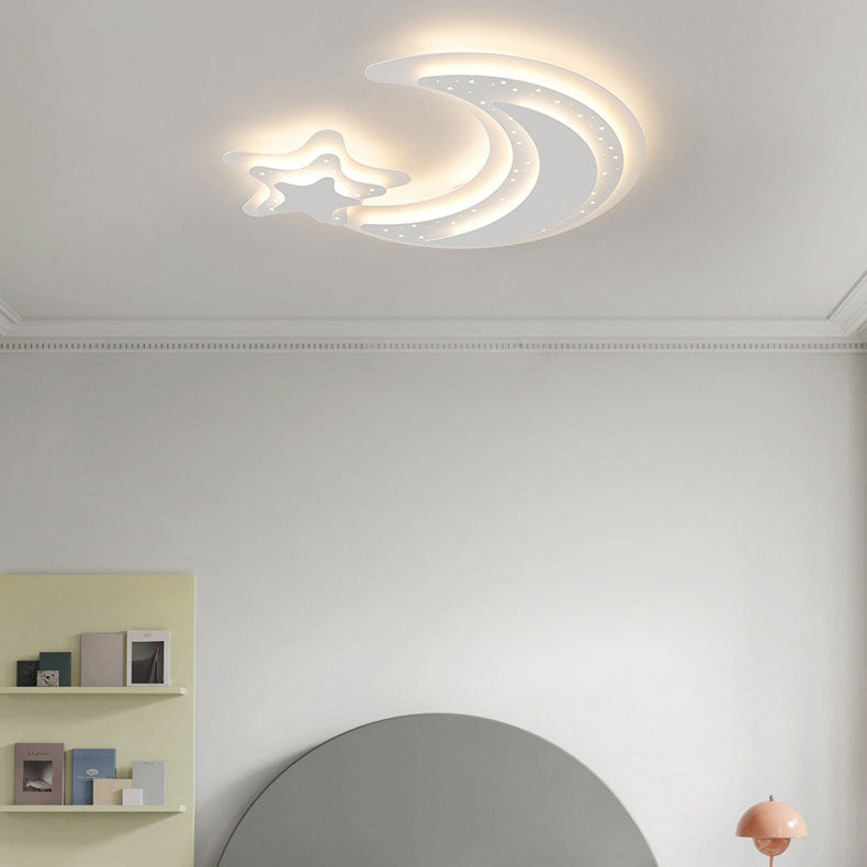 Contemporary Creative Moon Acrylic Iron LED Flush Mount Ceiling Light For Bedroom
