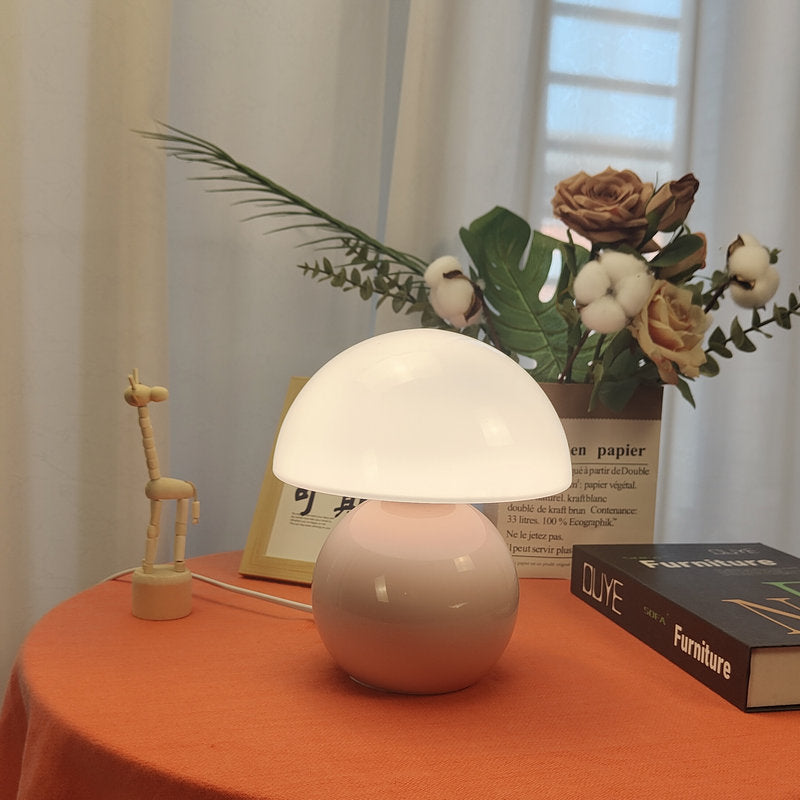 Contemporary Creative Mushroom Orb Ceramic 1-Light Table Lamp For Bedroom