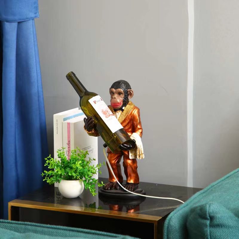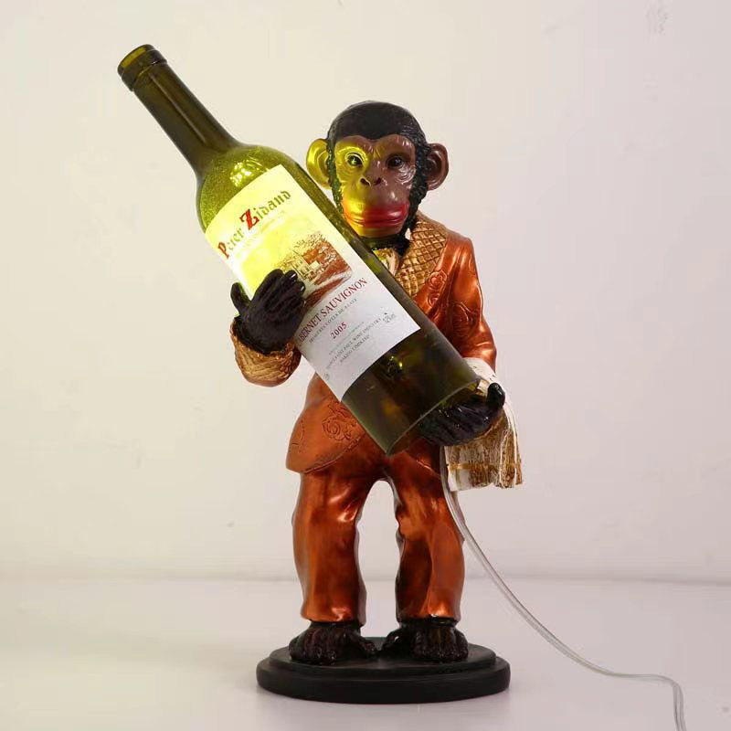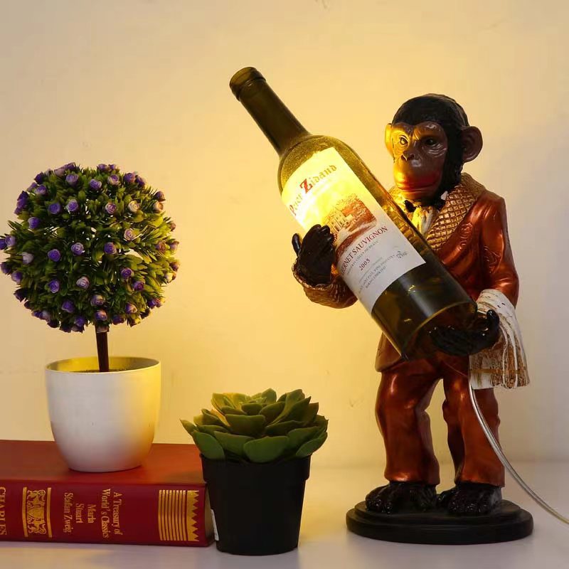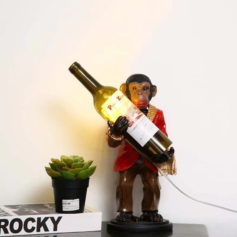 Contemporary Creative Orangutan Wine Bottle Glass Resin 1-Light Table Lamp For Living Room