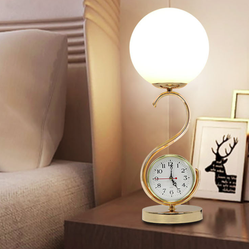Contemporary Creative Orb Clock Iron Glass 1-Light Table Lamp For Bedroom