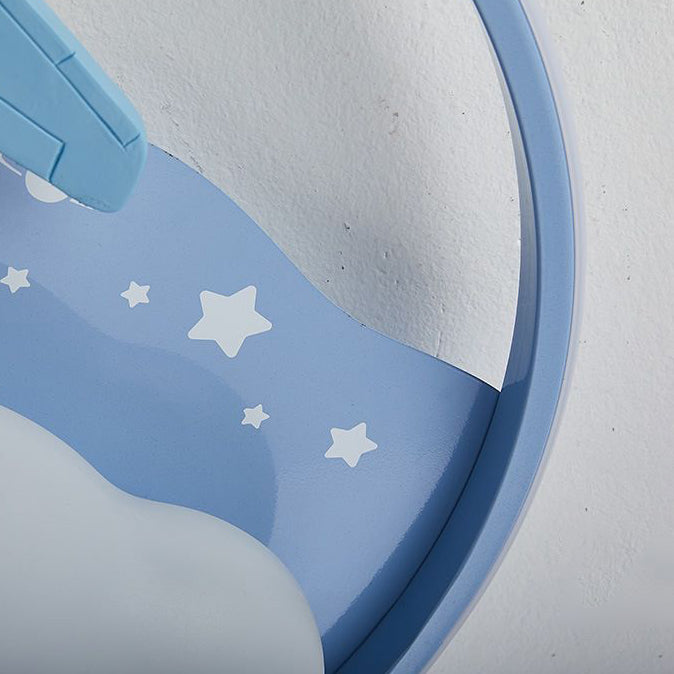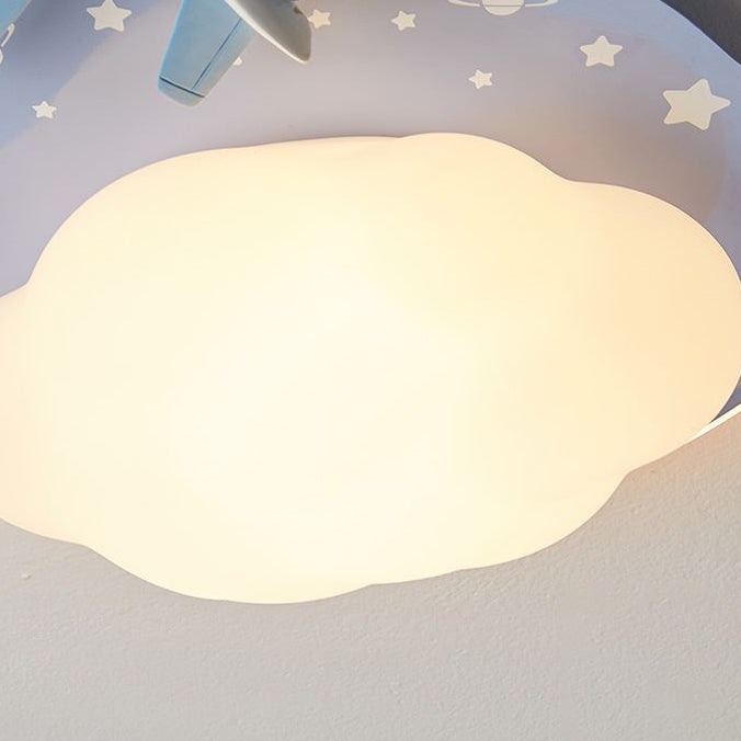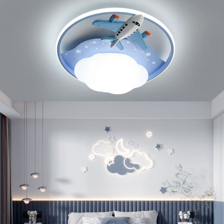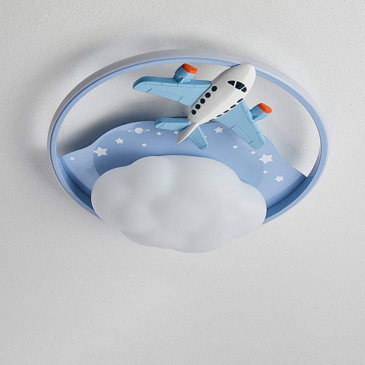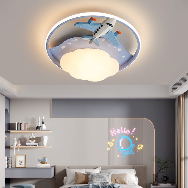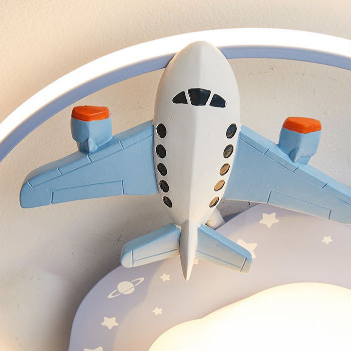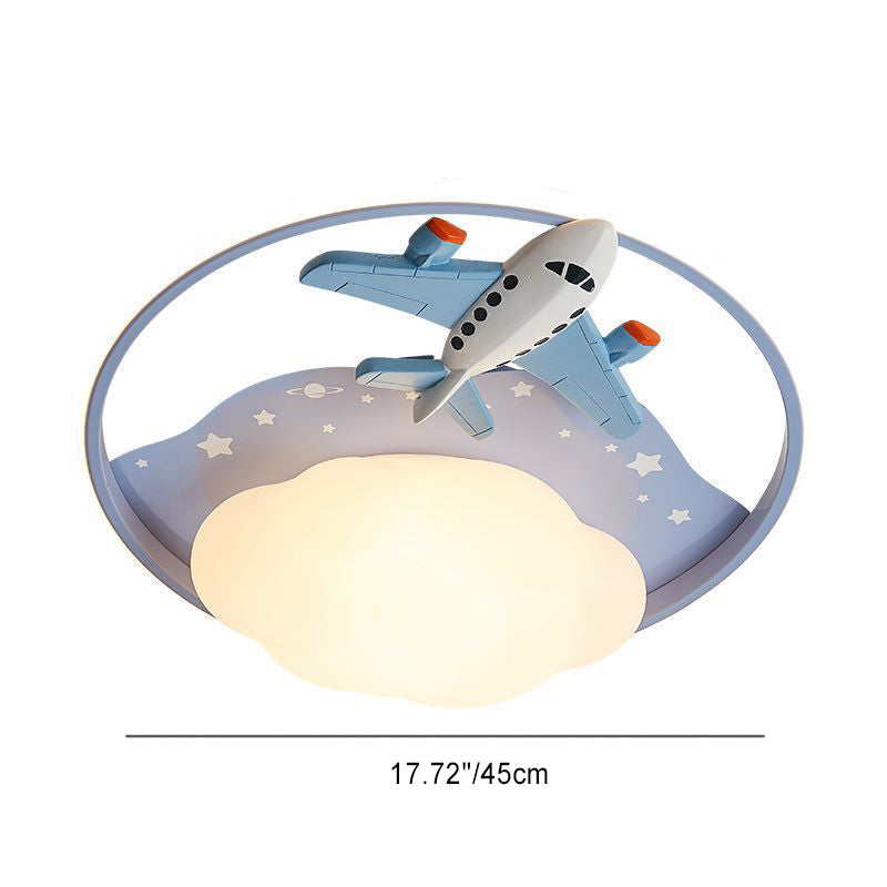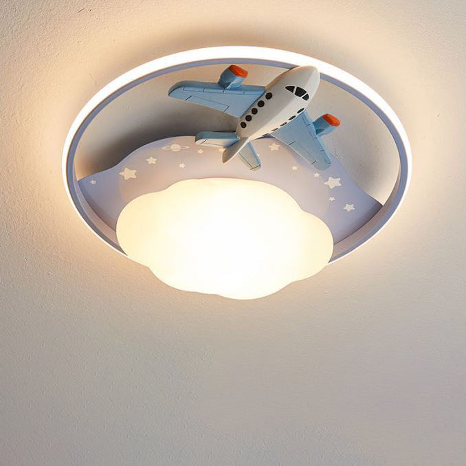 Contemporary Creative Resin Cartoon Airplane Rabbit Iron LED Kids Flush Mount Ceiling Light For Bedroom