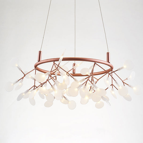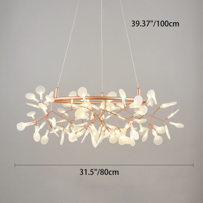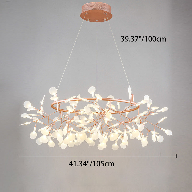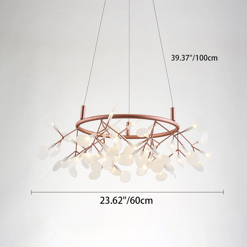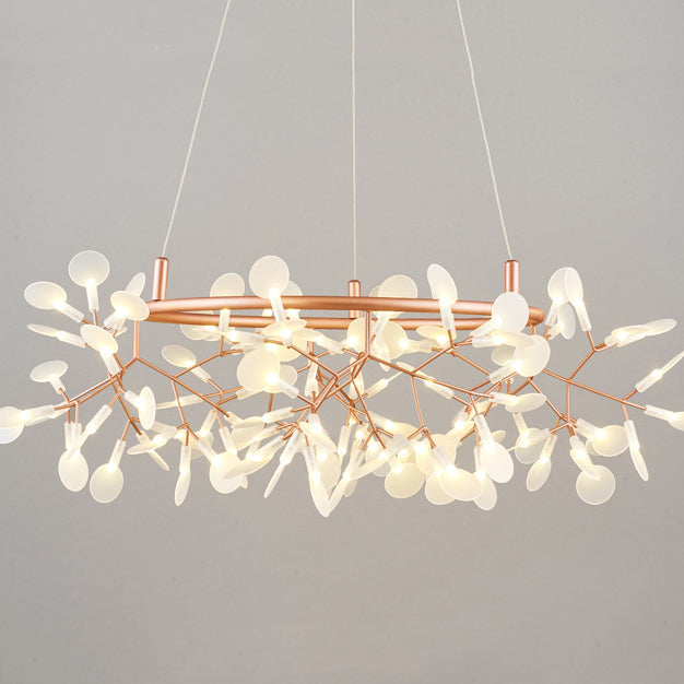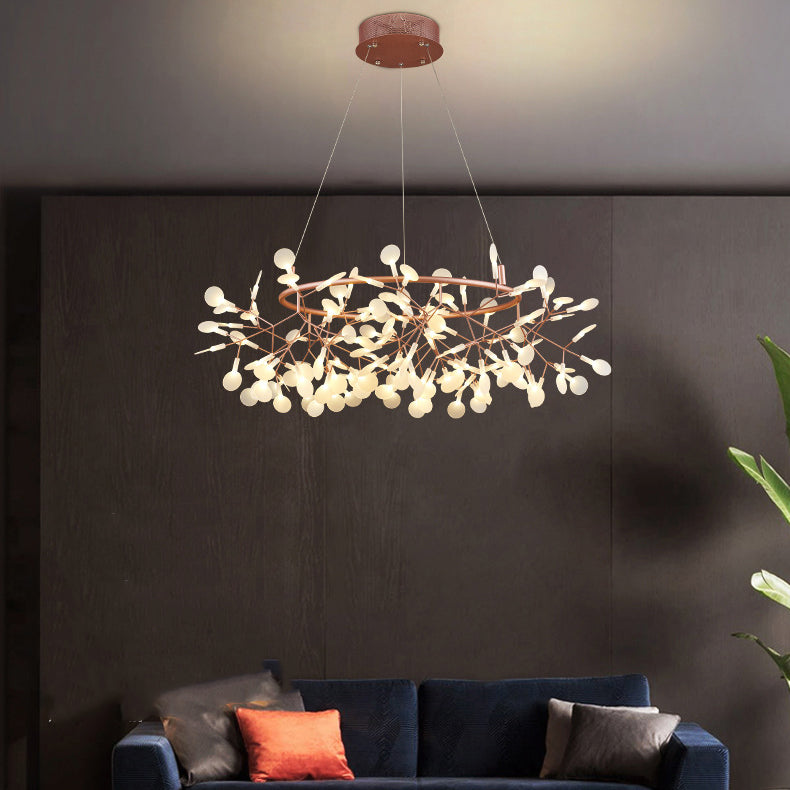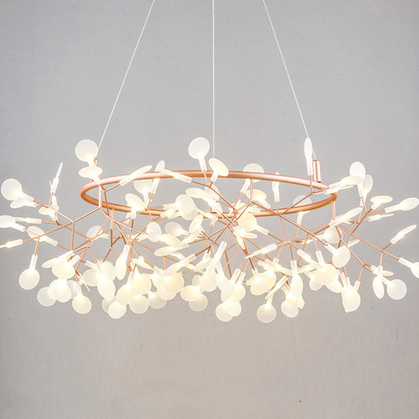 Contemporary Creative Round Branch Firefly Acrylic Stainless Steel LED Chandelier For Bedroom