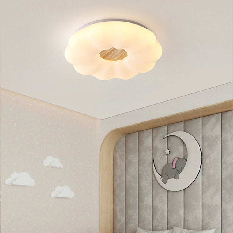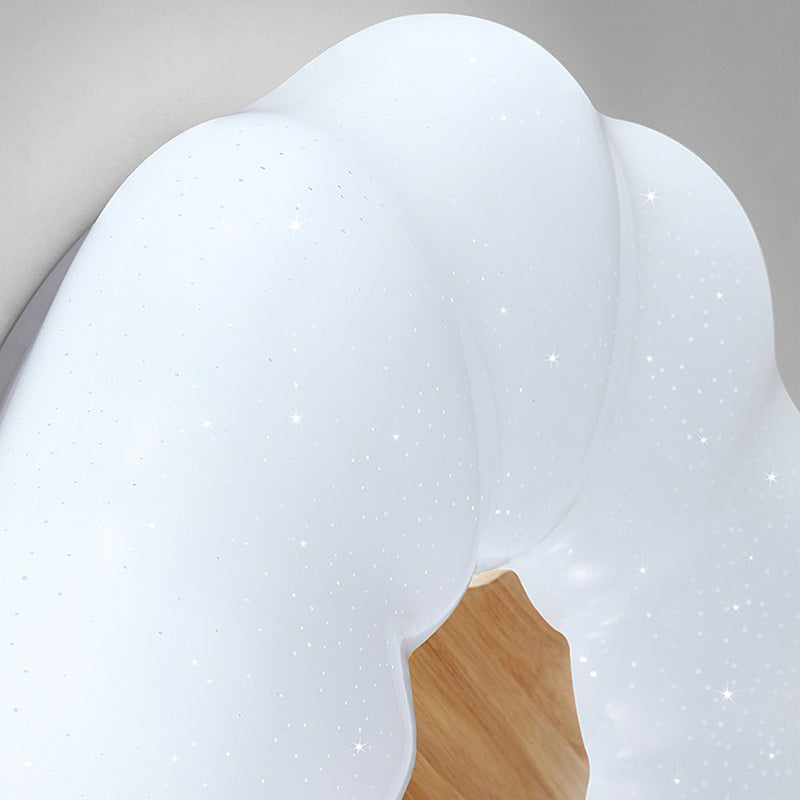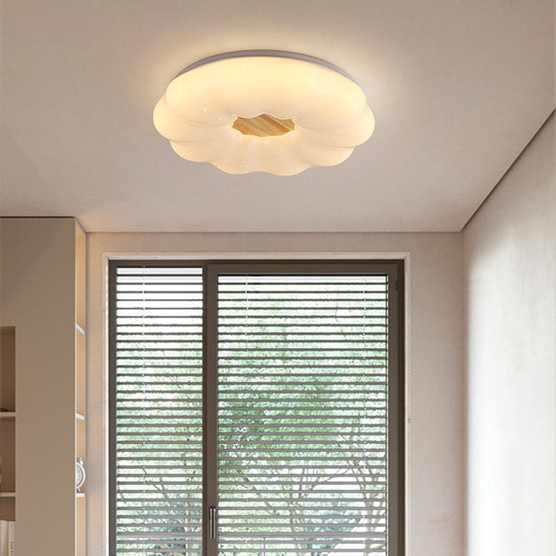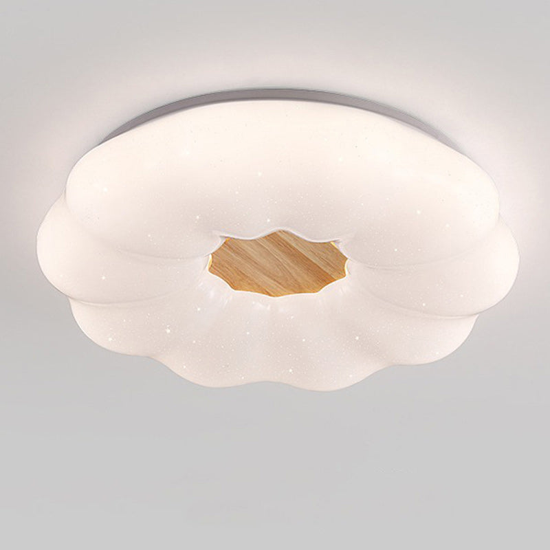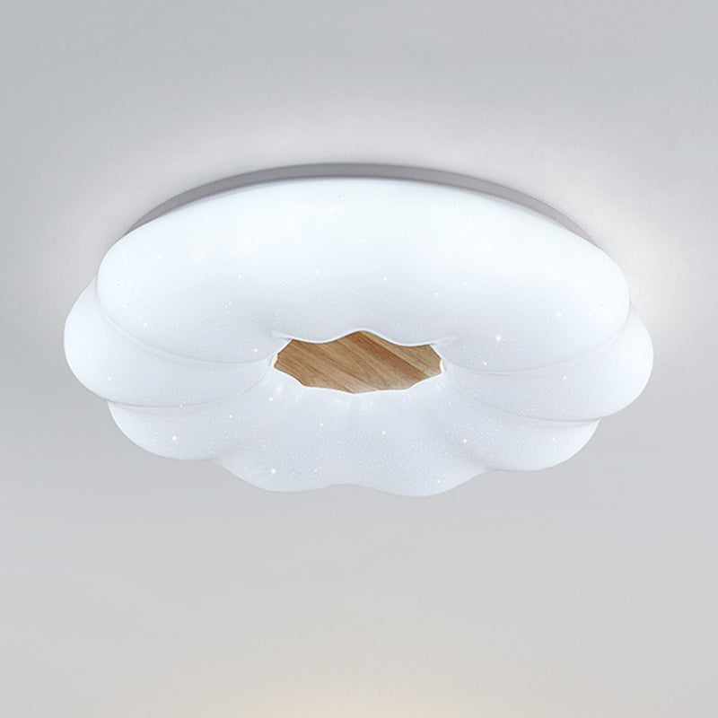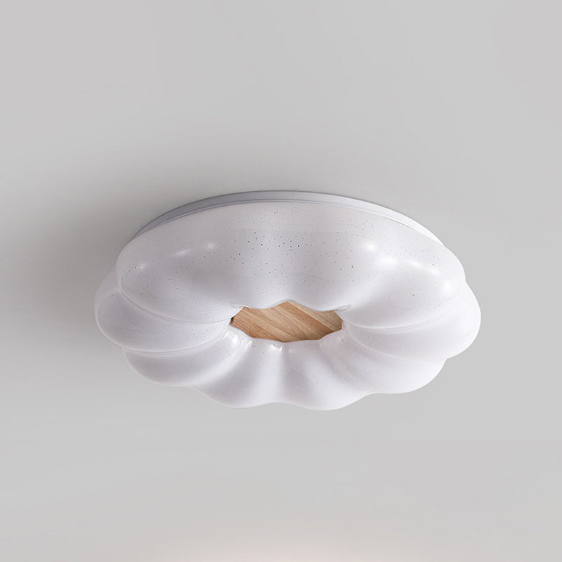 Contemporary Creative Round Cloud Shape Solid Wood Iron Acrylic Shade LED Flush Mount Ceiling Light For Bedroom
