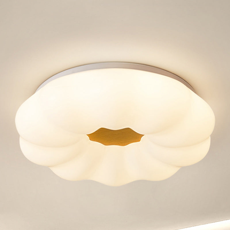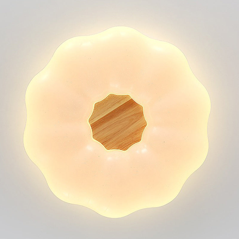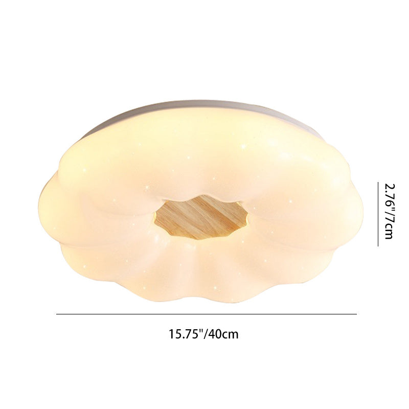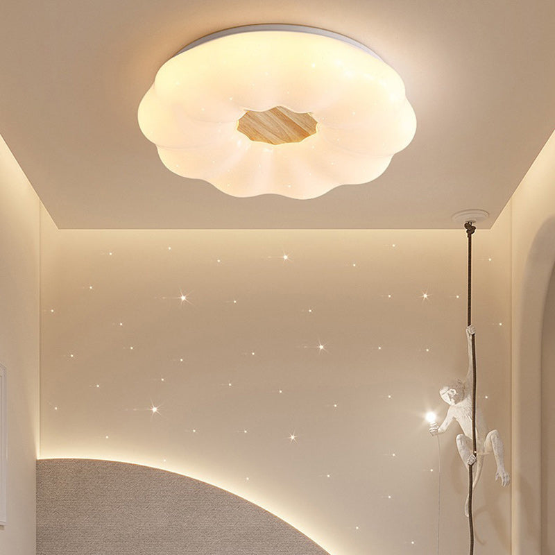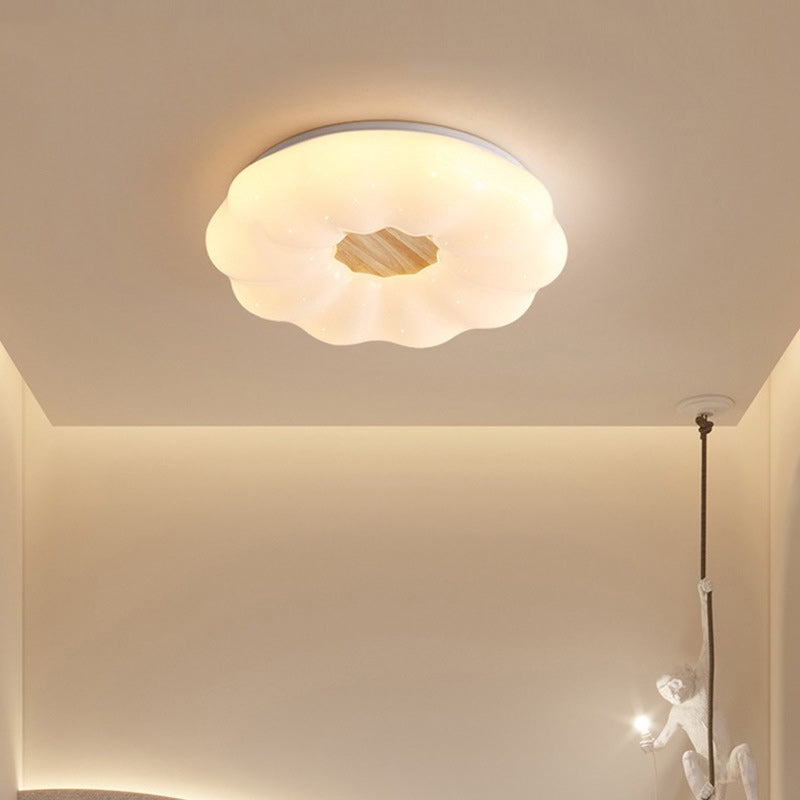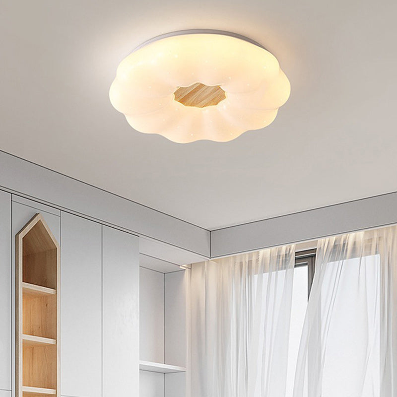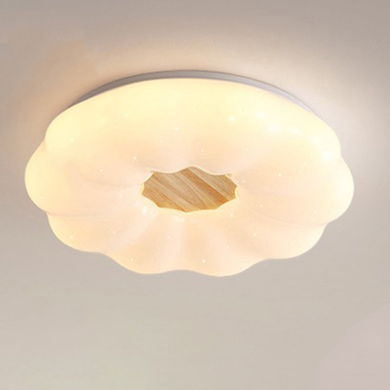 Contemporary Creative Round Cloud Shape Solid Wood Iron Acrylic Shade LED Flush Mount Ceiling Light For Bedroom