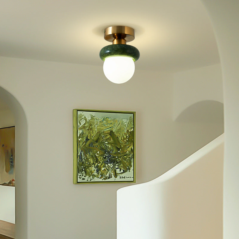 Contemporary Creative Round Orb Glass Jade Hardware 1-Light Semi-Flush Mount Ceiling Light For Living Room