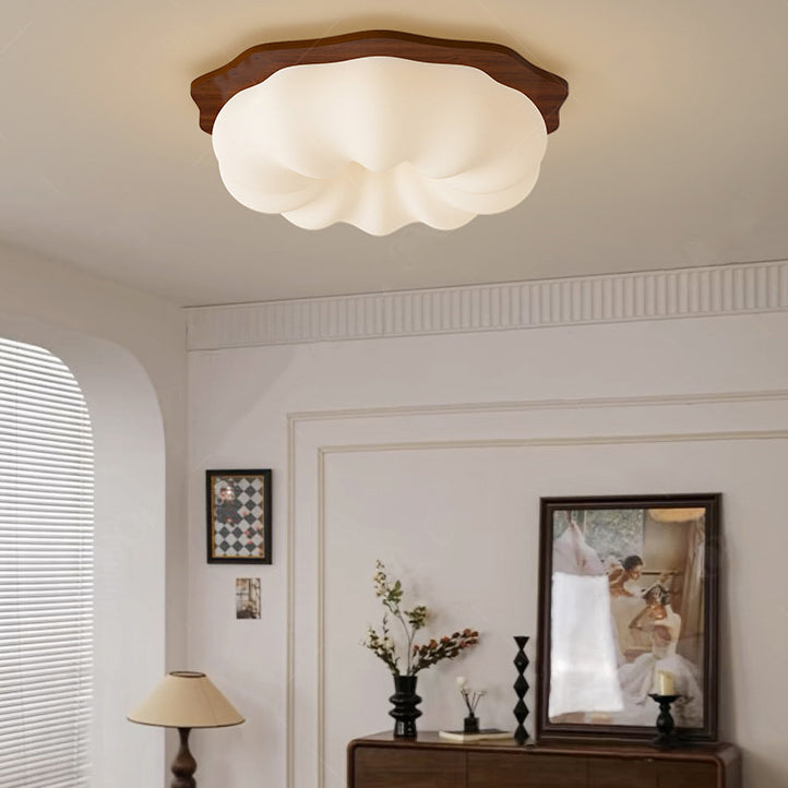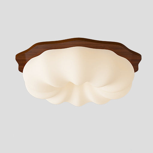 Contemporary Creative Round Wood Plastic LED Flush Mount Ceiling Light For Living Room