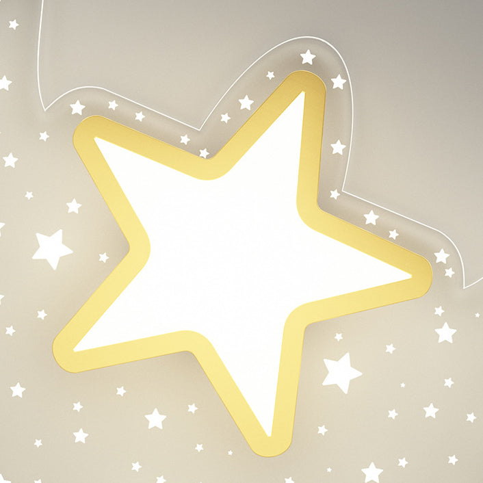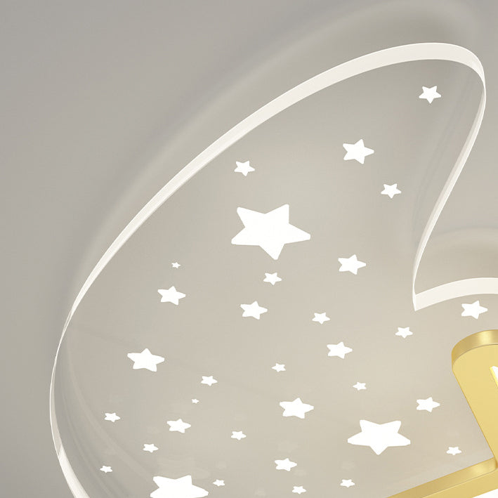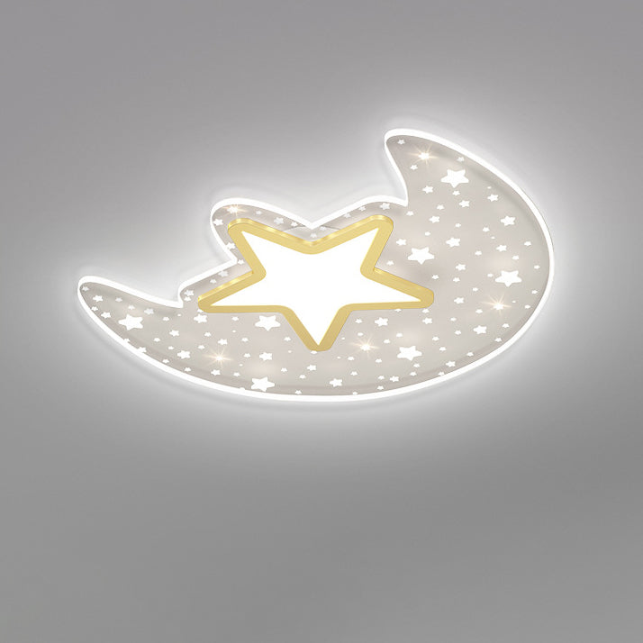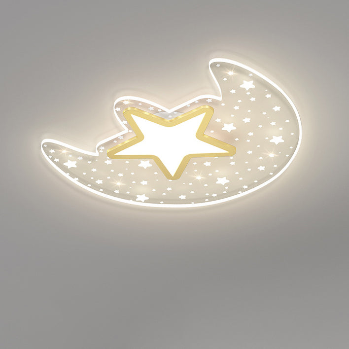 Contemporary Creative Star Moon Aluminium Acrylic LED Flush Mount Ceiling Light For Bedroom