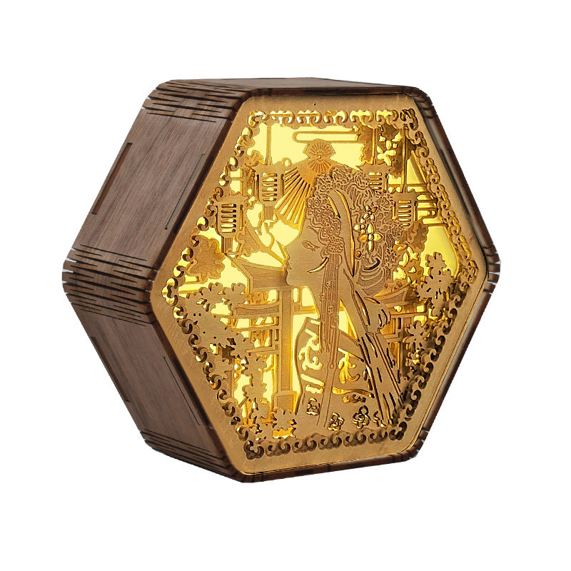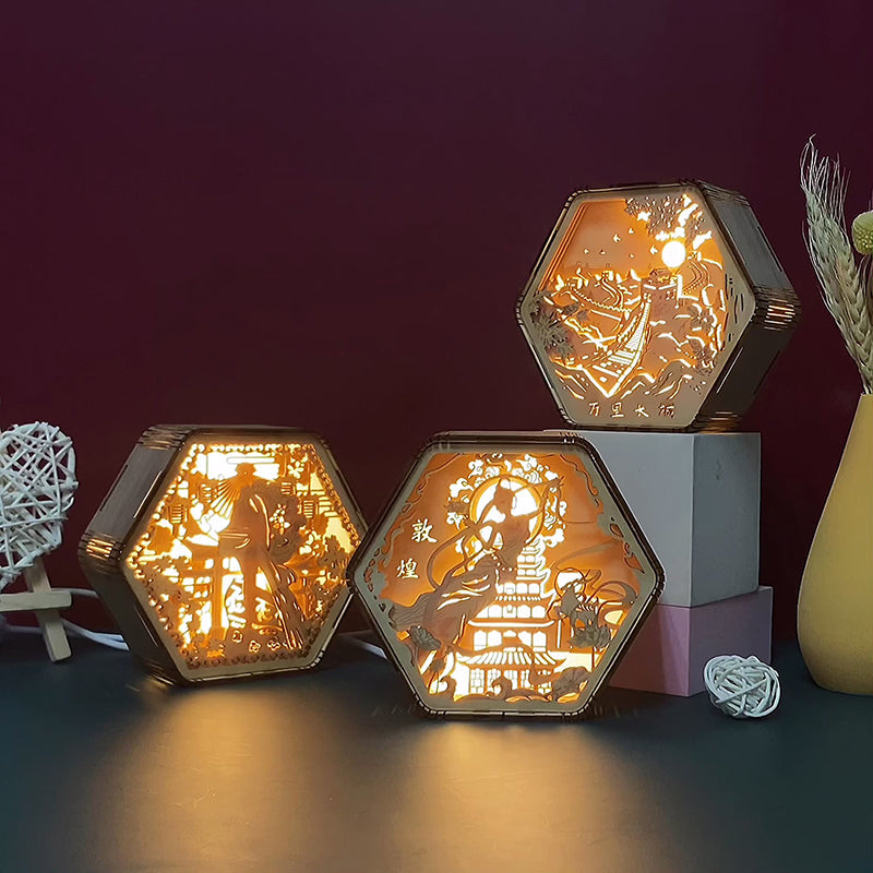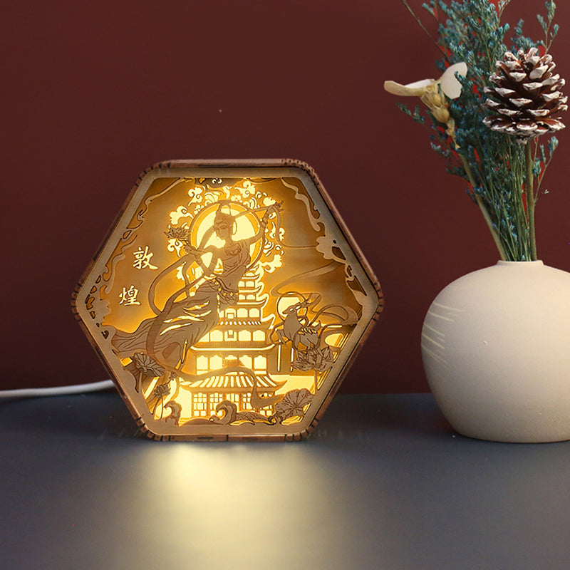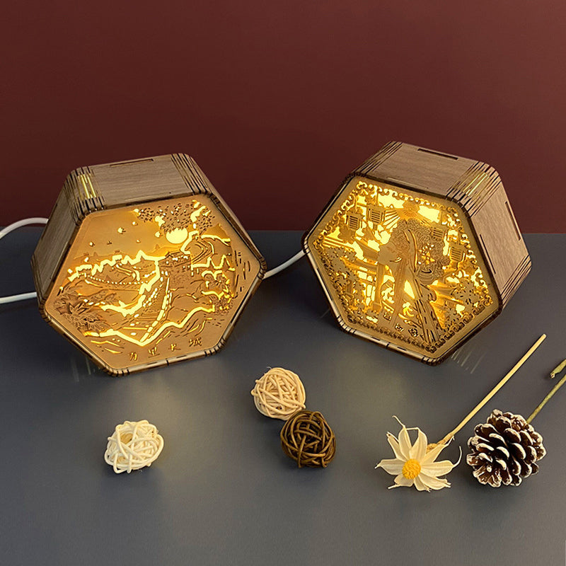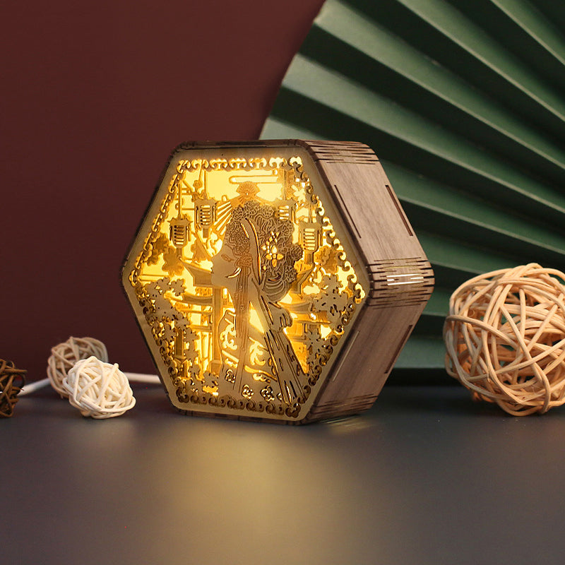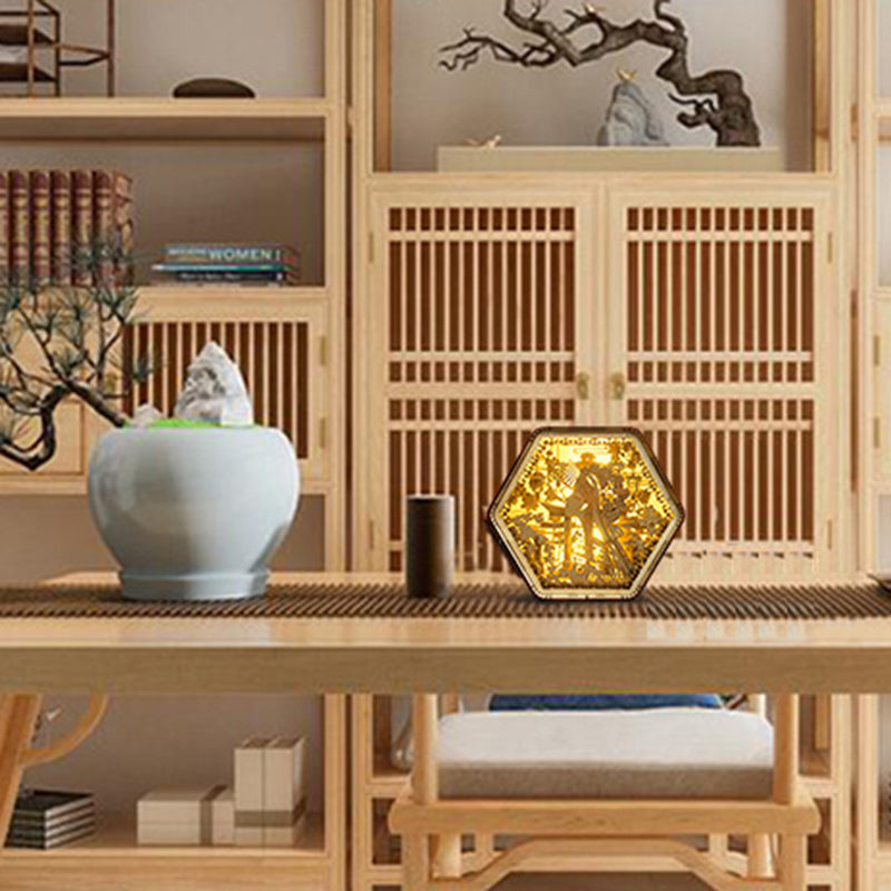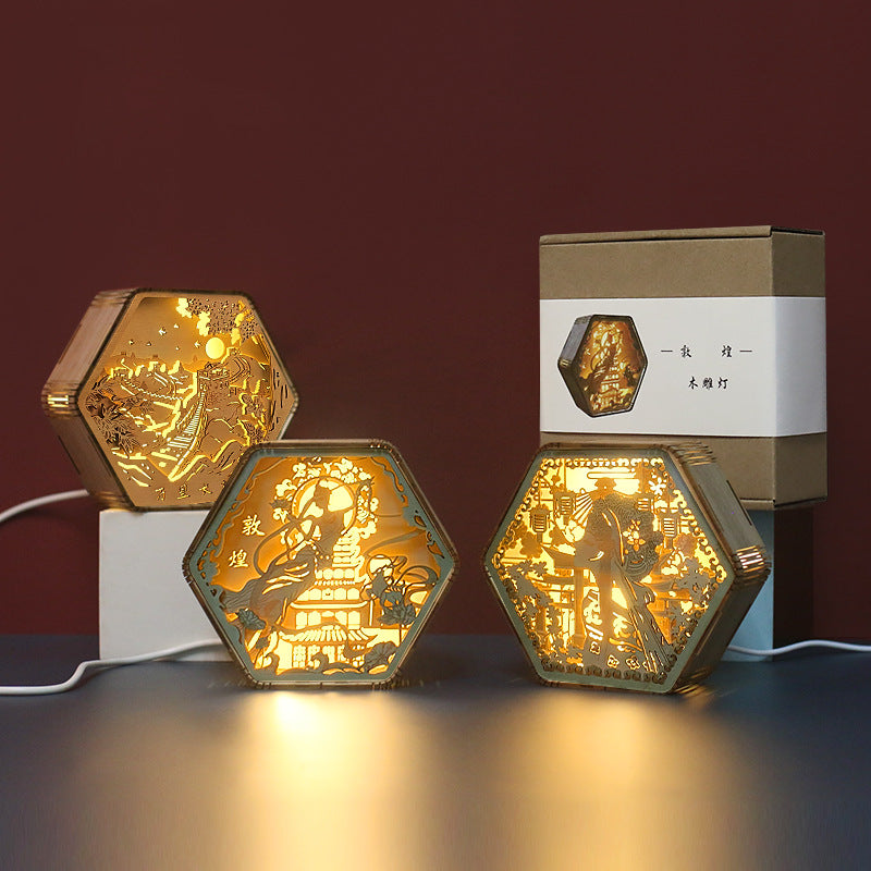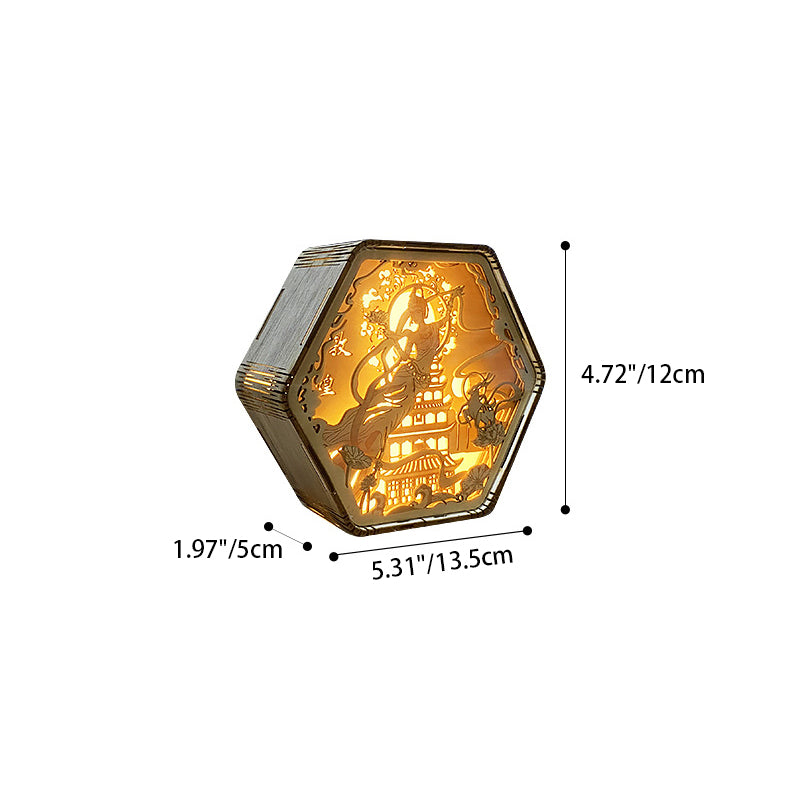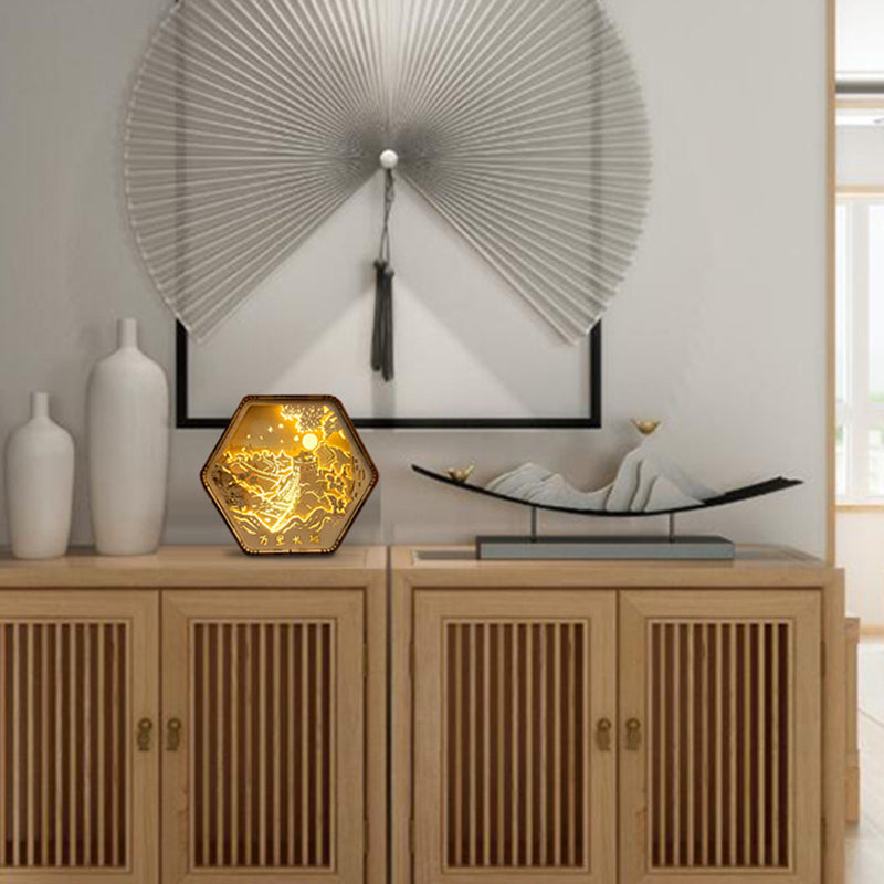 Contemporary Creative Wooden Carving Hexagonal Frame LED Table Lamp For Bedroom