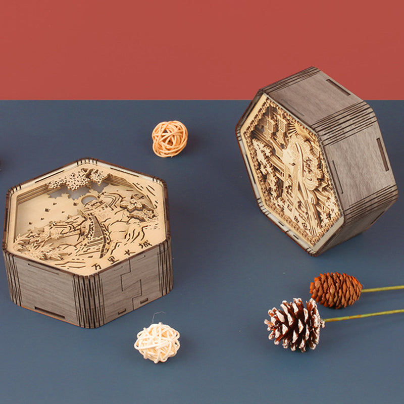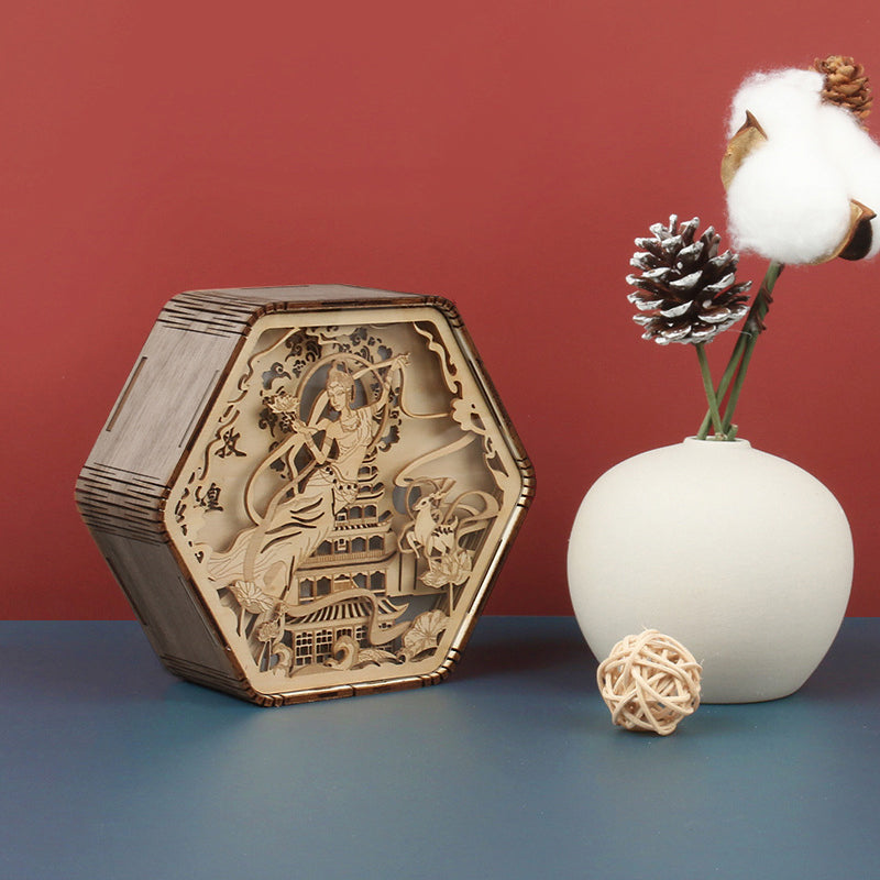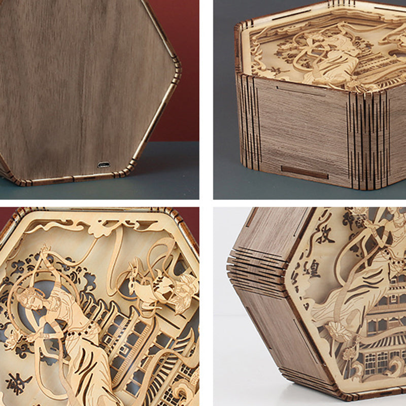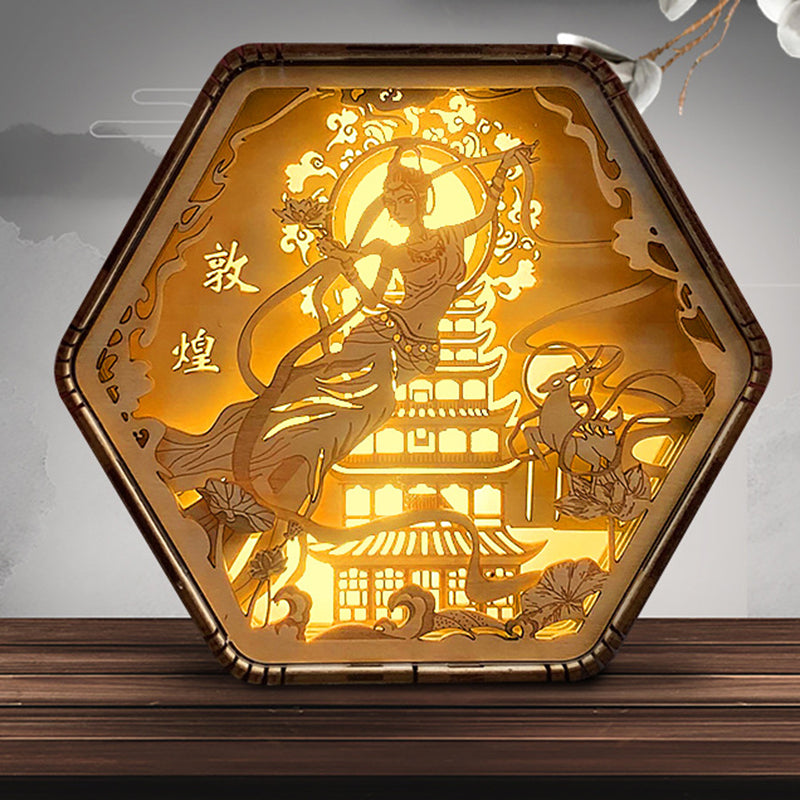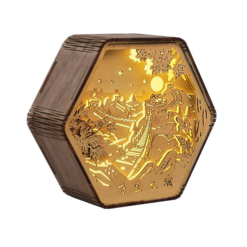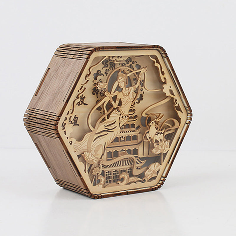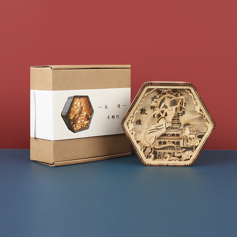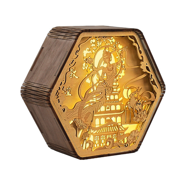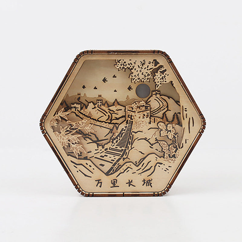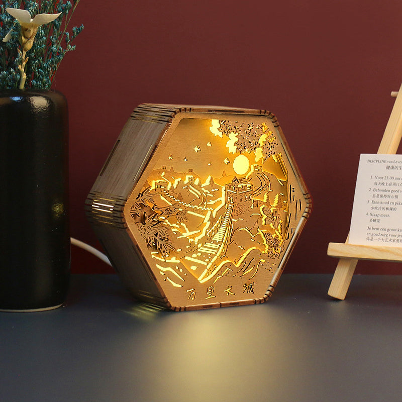 Contemporary Creative Wooden Carving Hexagonal Frame LED Table Lamp For Bedroom