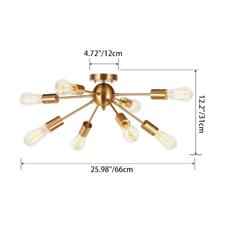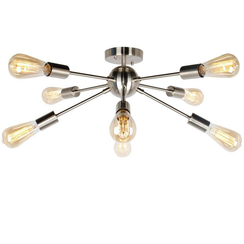 Contemporary Industrial Iron Branch Satellite 8-Light Semi-Flush Mount Ceiling Light For Living Room