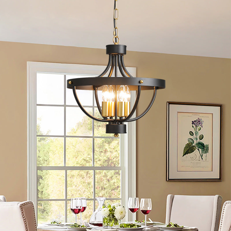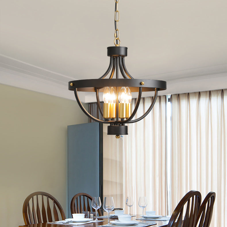 Contemporary Industrial Iron Cage Candle 4-Light Chandeliers For Dining Room