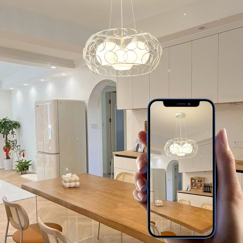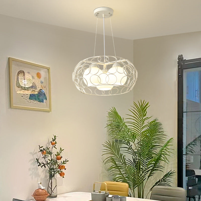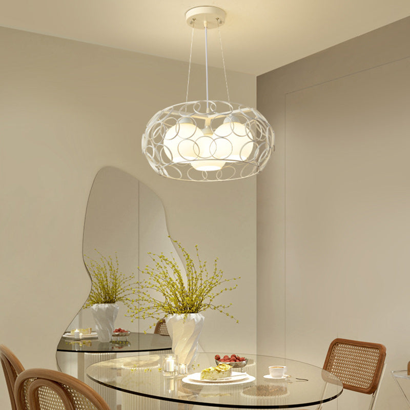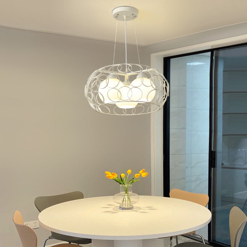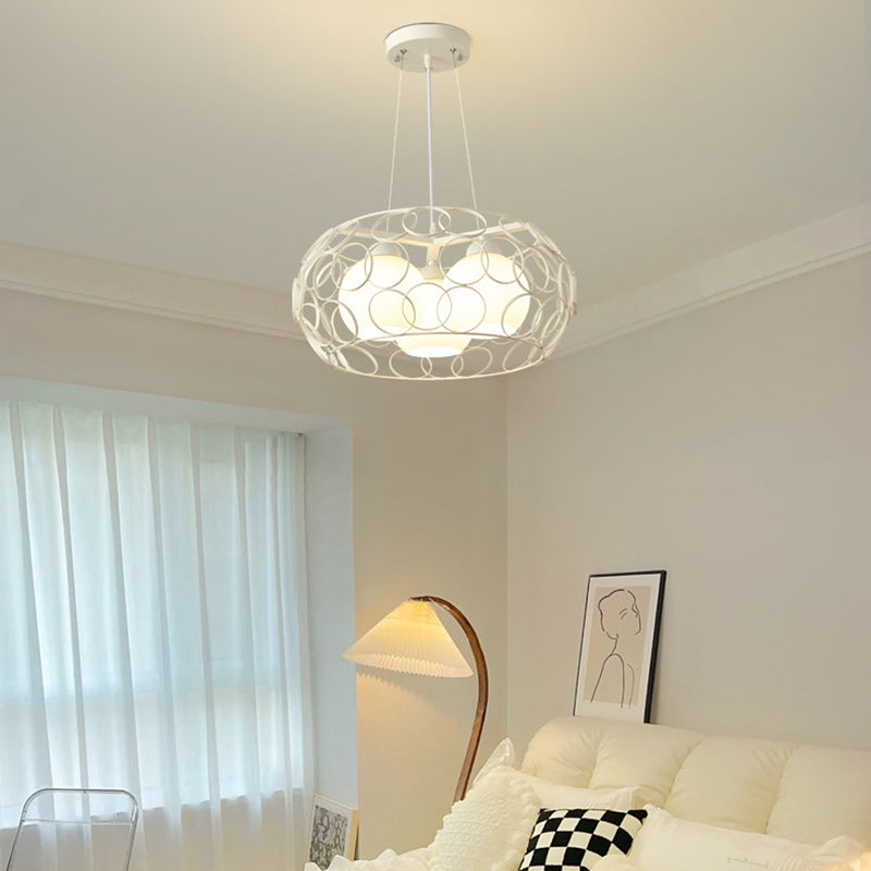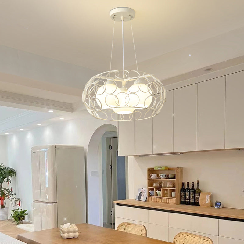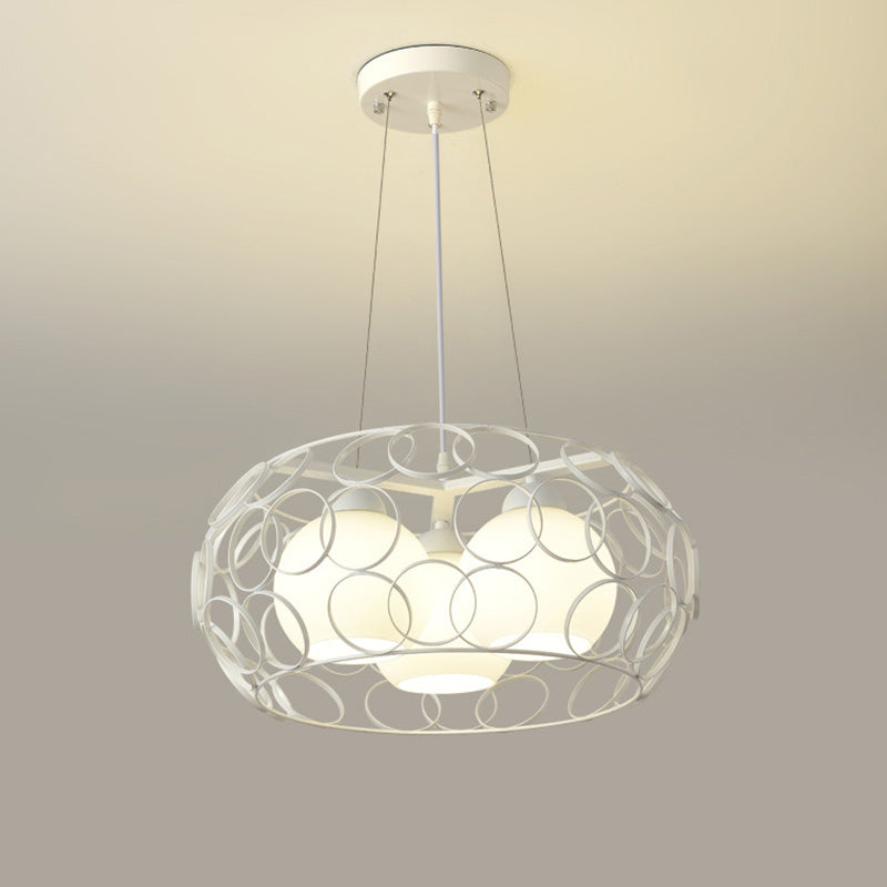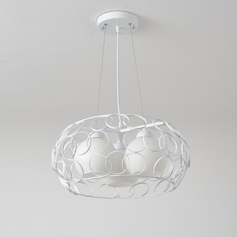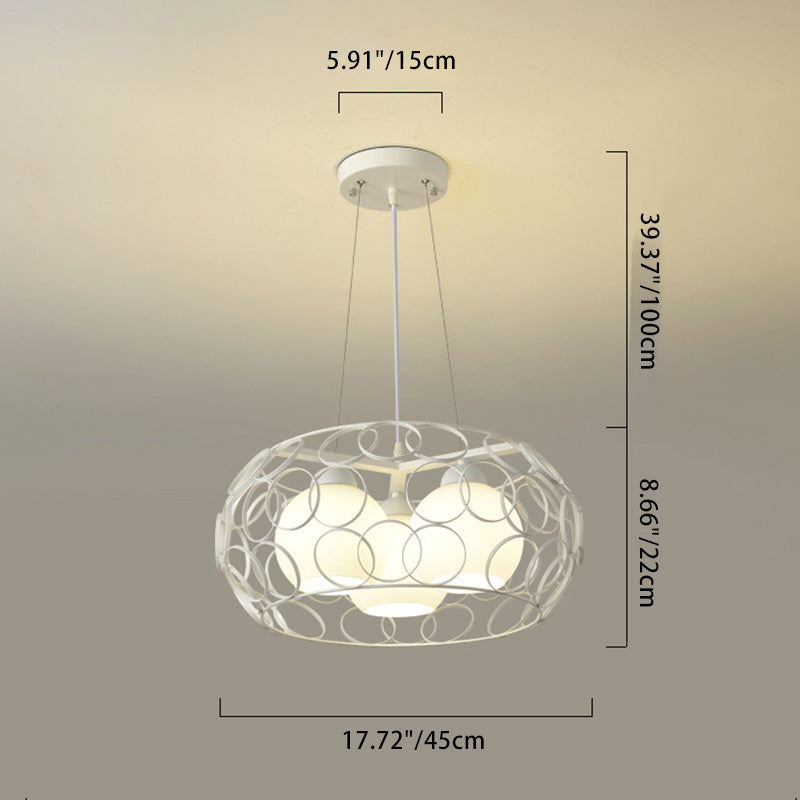 Contemporary Industrial Round Openwork Circles Glass Iron 3-Light Chandelier For Living Room