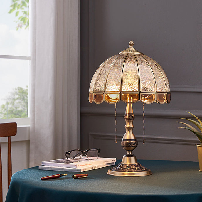 Contemporary Luxury Copper Frosted Glass Dome 2-Light Table Lamp For Living Room