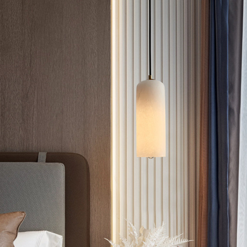 Contemporary Luxury Cylinder Copper Stone 1-Light Pendant Light For Living Room