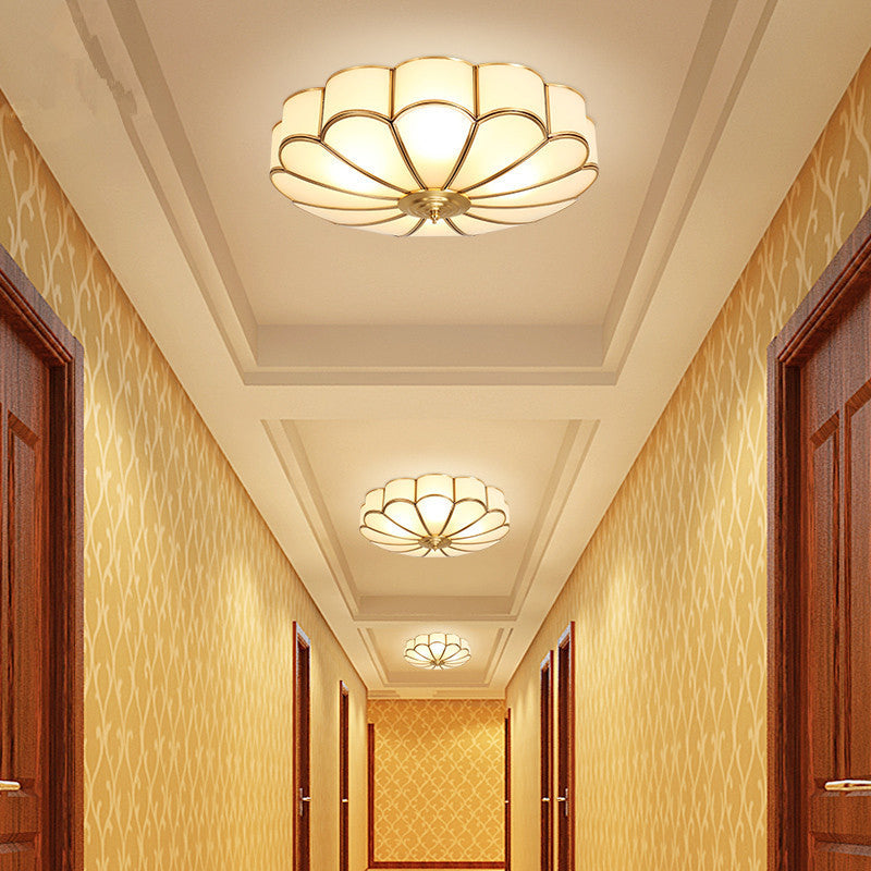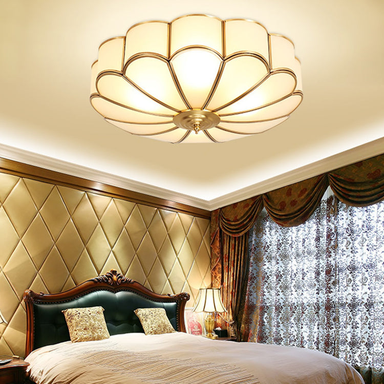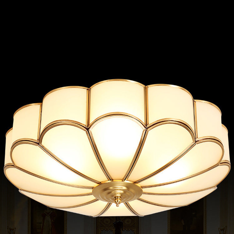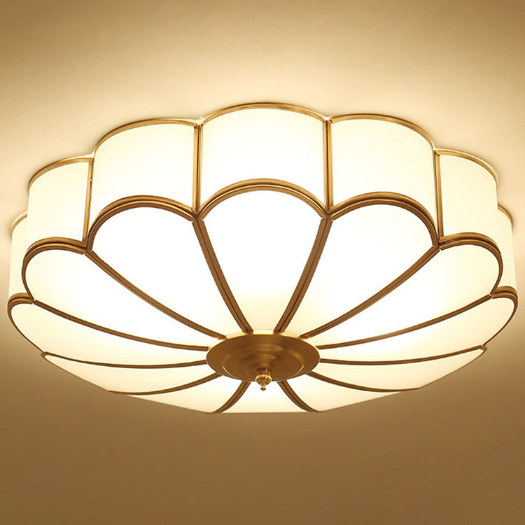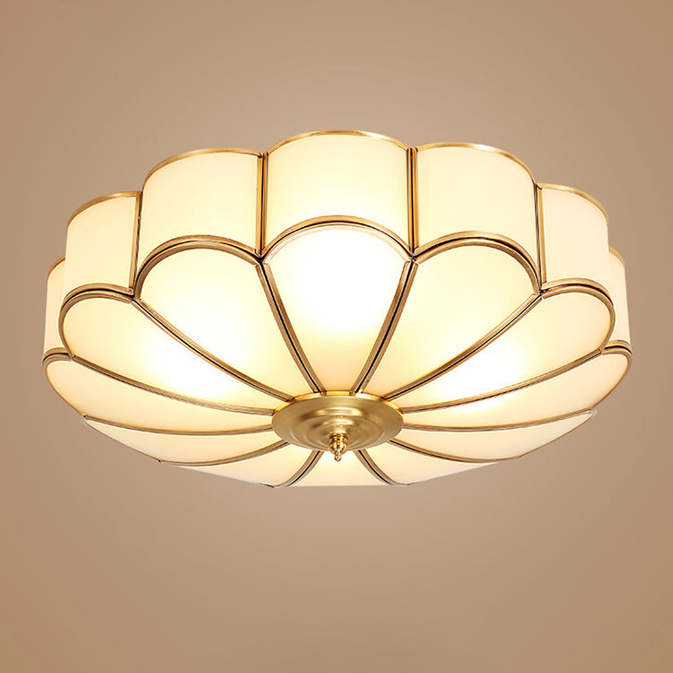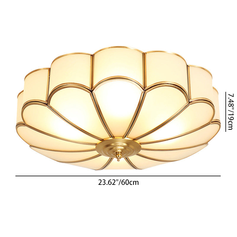 Contemporary Luxury Flower Copper Glass 3/4/6 Light Flush Mount Ceiling Light For Living Room