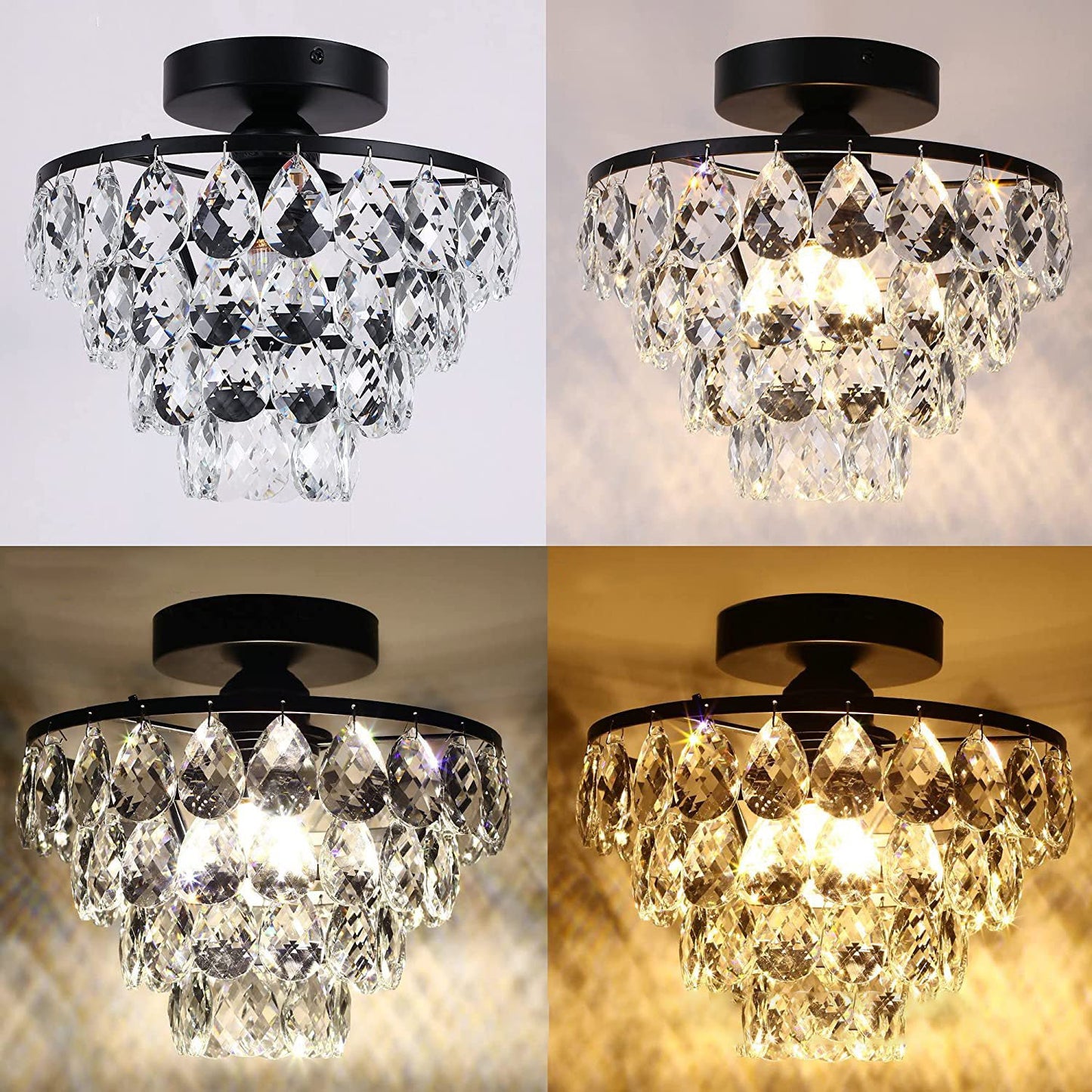 Contemporary Luxury Hardware Crystal 1-Light Semi-Flush Mount Ceiling Light For Living Room