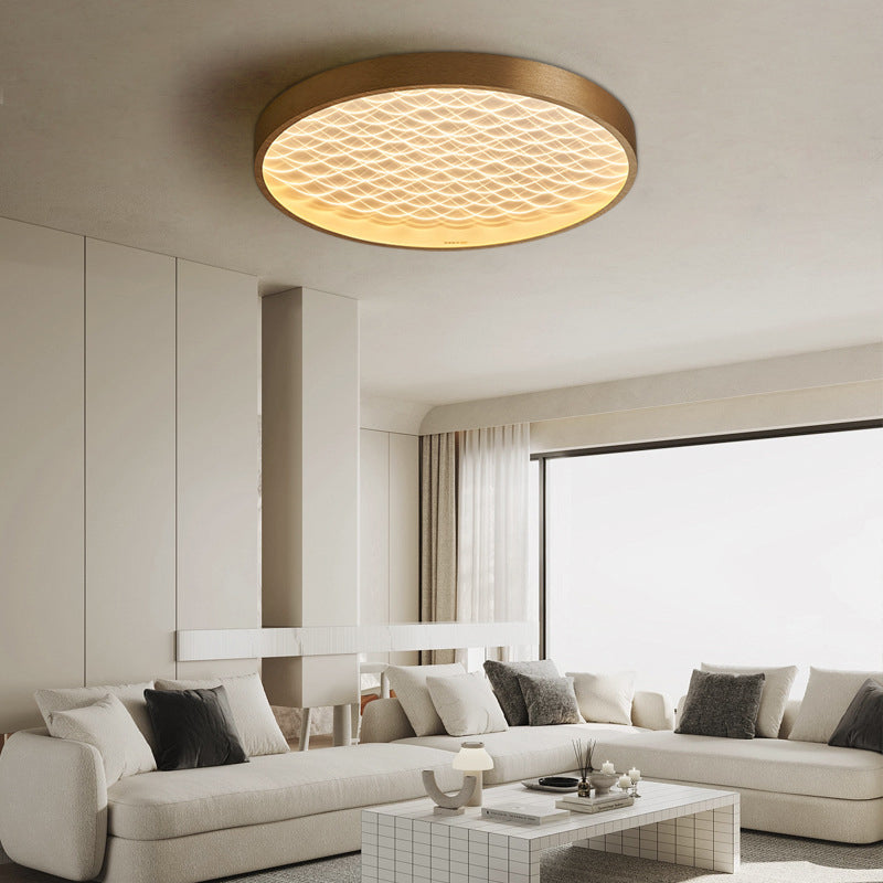 Contemporary Luxury Round Ripple Aluminum Acrylic LED Flush Mount Ceiling Light For Bedroom
