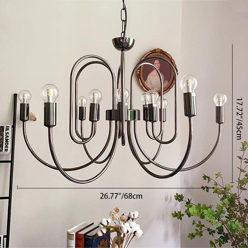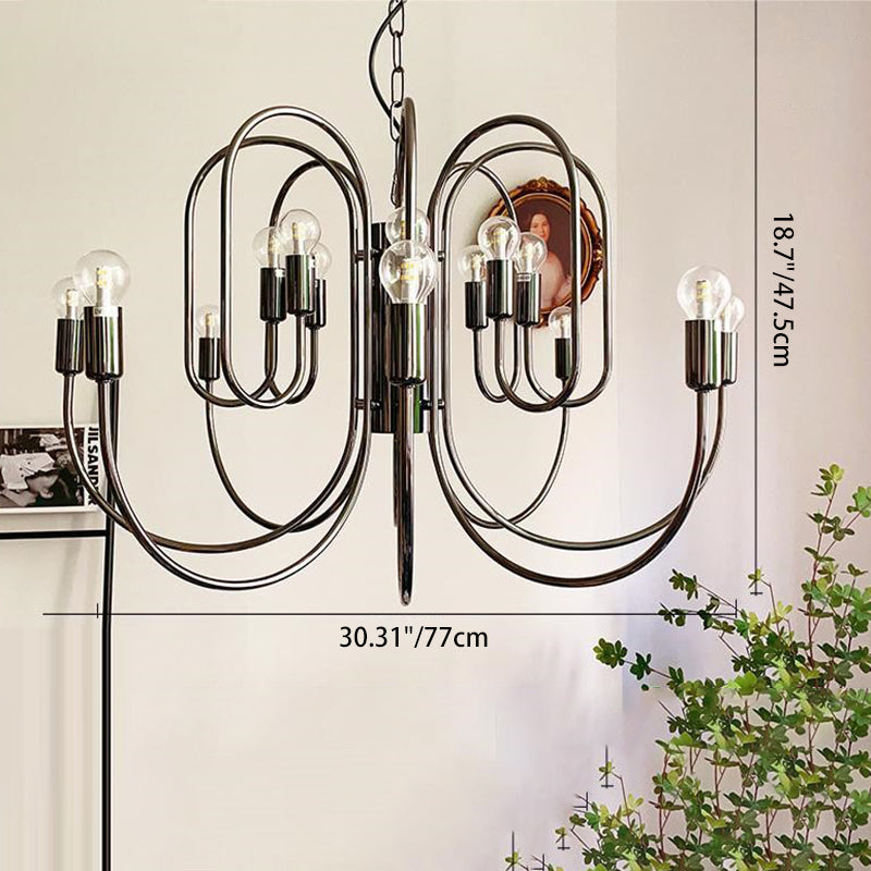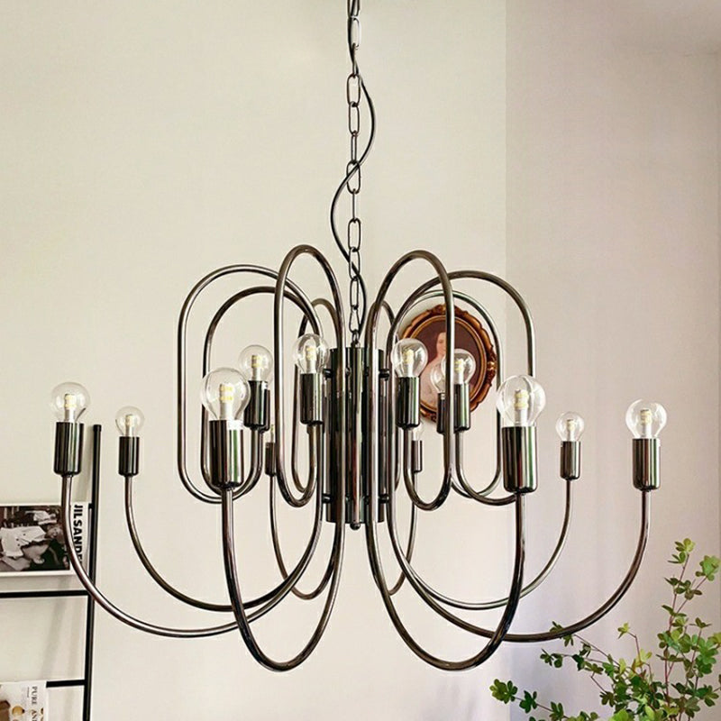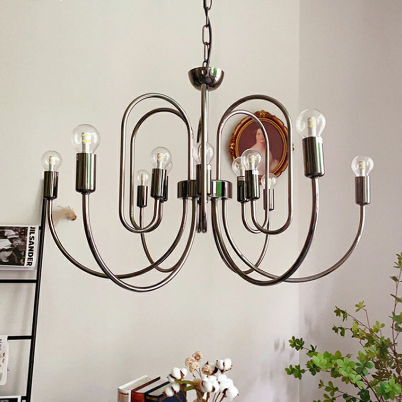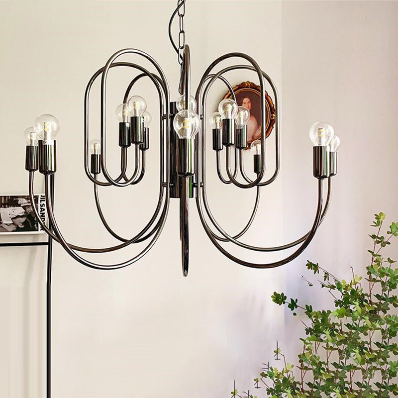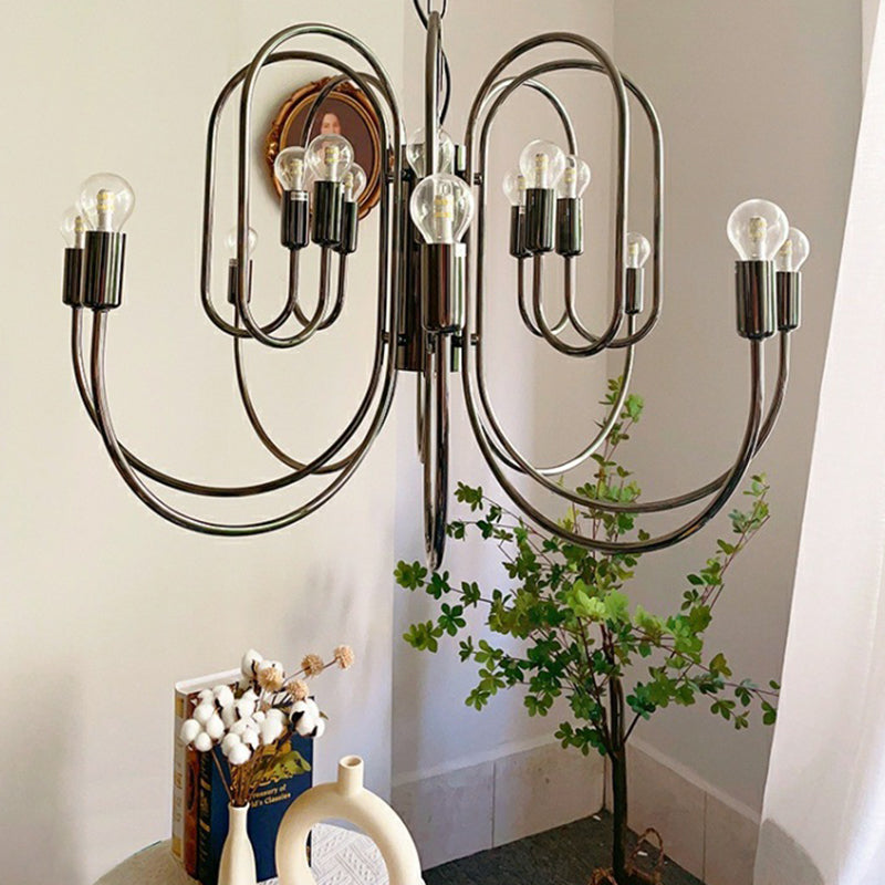Contemporary Nordic Branch Curved Rod Carbon Steel Glass 8/12/16 Light Chandelier For Living Room