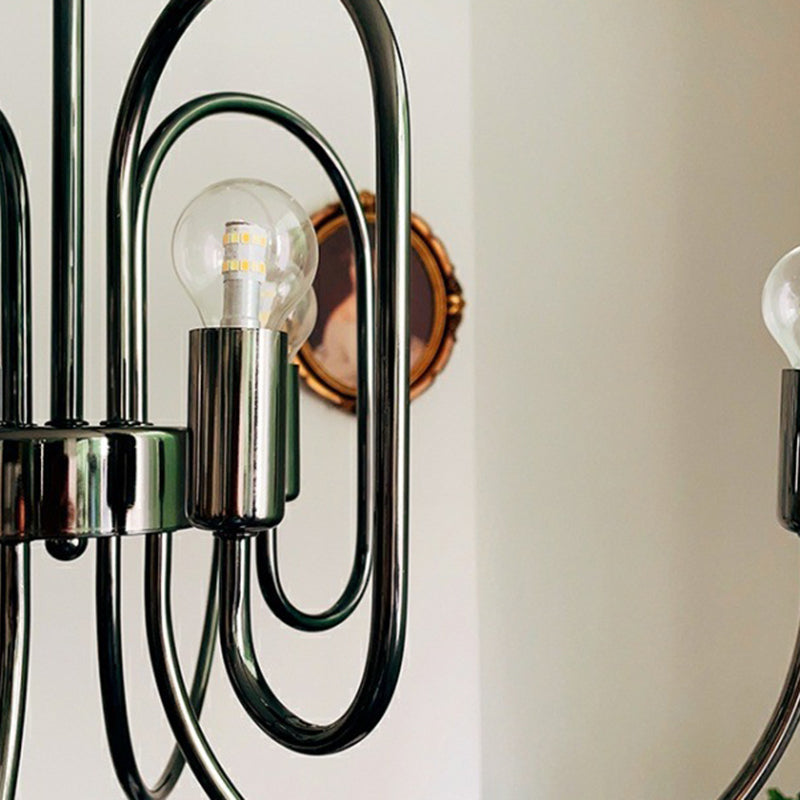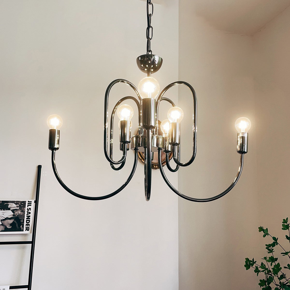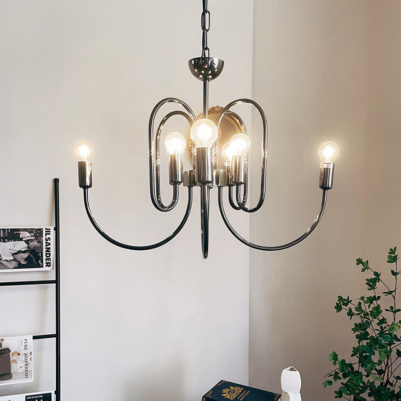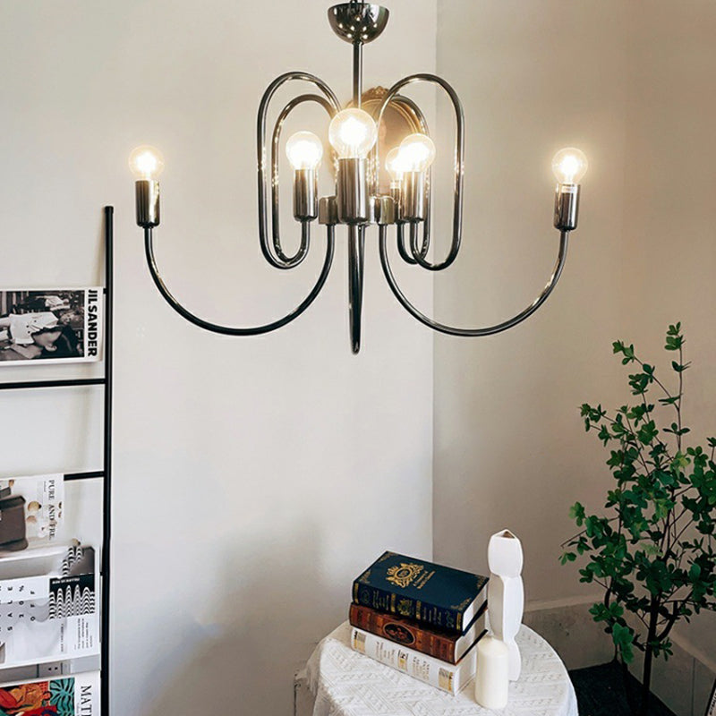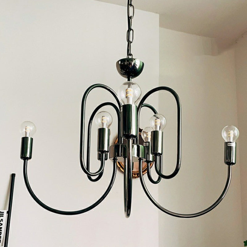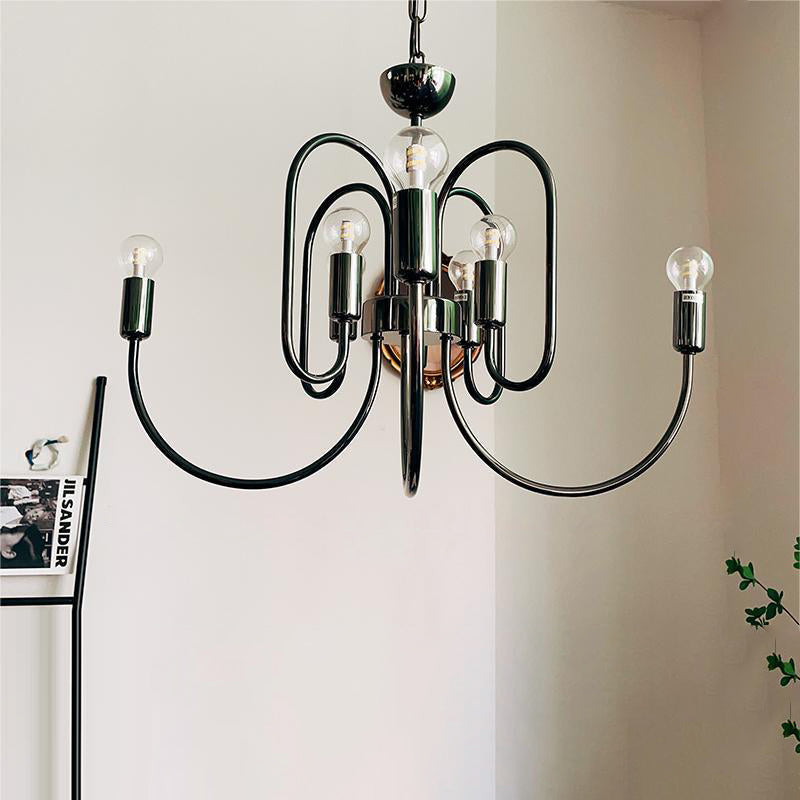 Contemporary Nordic Branch Curved Rod Carbon Steel Glass 8/12/16 Light Chandelier For Living Room