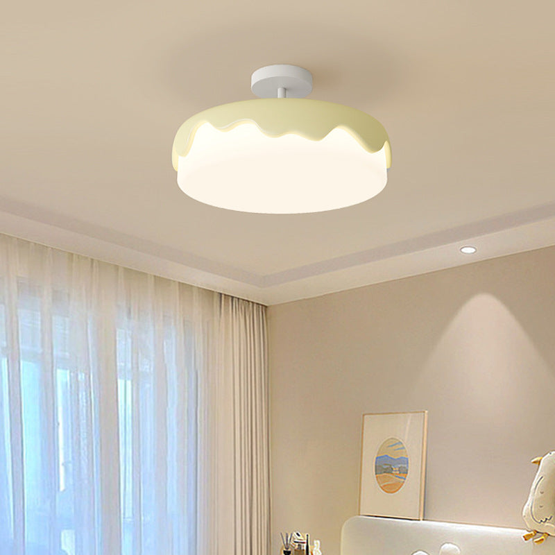 Contemporary Nordic Cake Shape Dome Resin Acrylic LED Semi-Flush Mount Ceiling Light For Bedroom