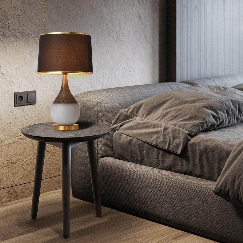 Contemporary Nordic Ceramic Fabric Cylinder 1-Light Table Lamp For Bedroom