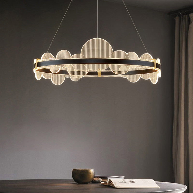 Contemporary Nordic Circle Aluminum Acrylic LED Chandelier For Living Room