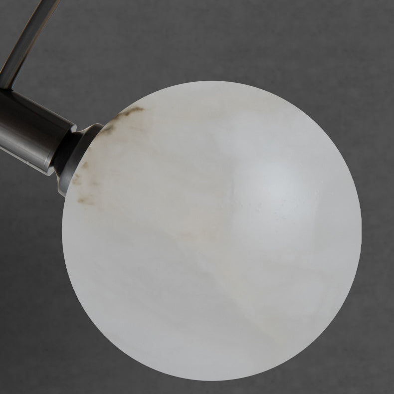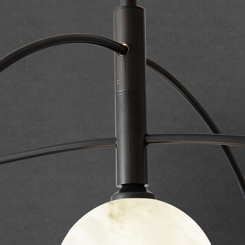 Contemporary Nordic Curved Round Orb Copper Marble 5-Light Chandelier For Living Room