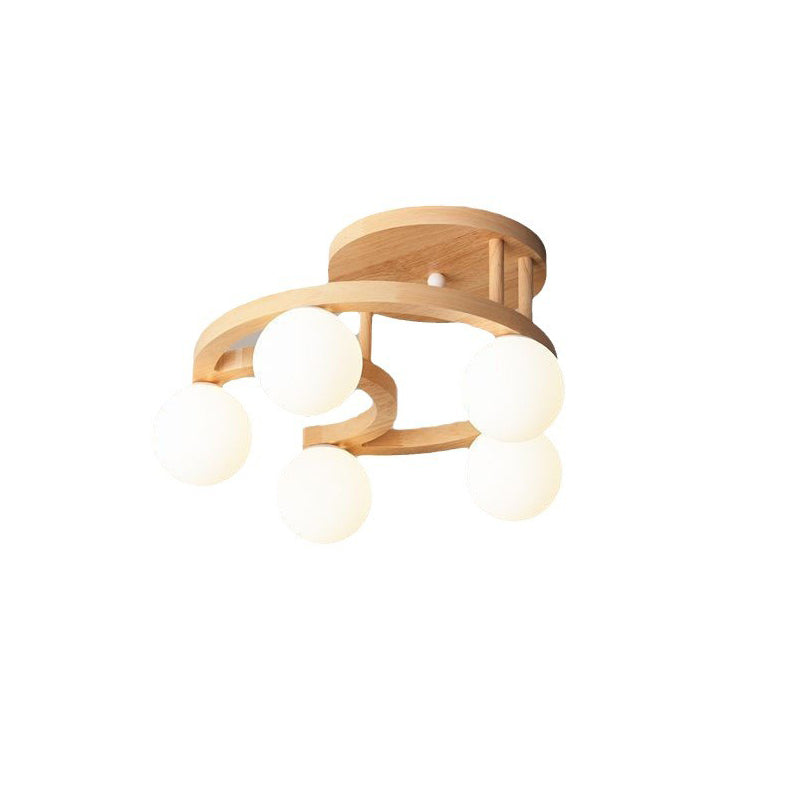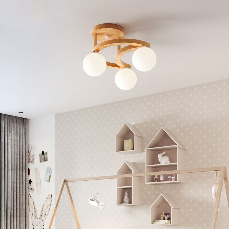 Contemporary Nordic Dome Moon Orbs Rubber Wood Glass Lampshade 3/5 - Light Semi-Flush Mount Ceiling Light For Bedroom