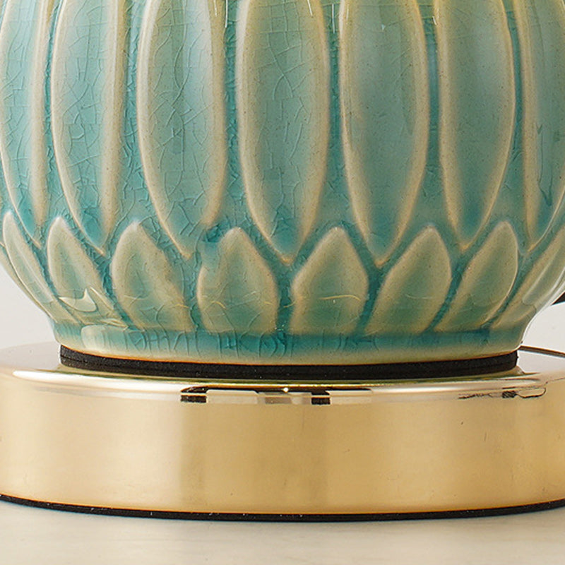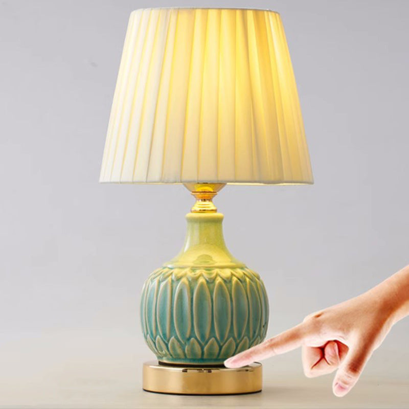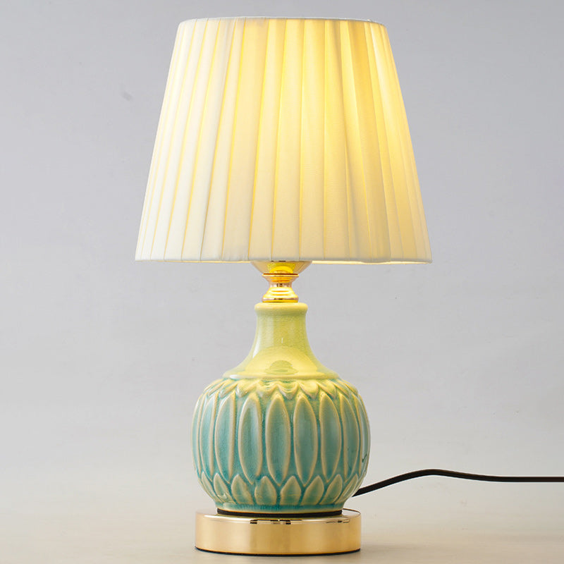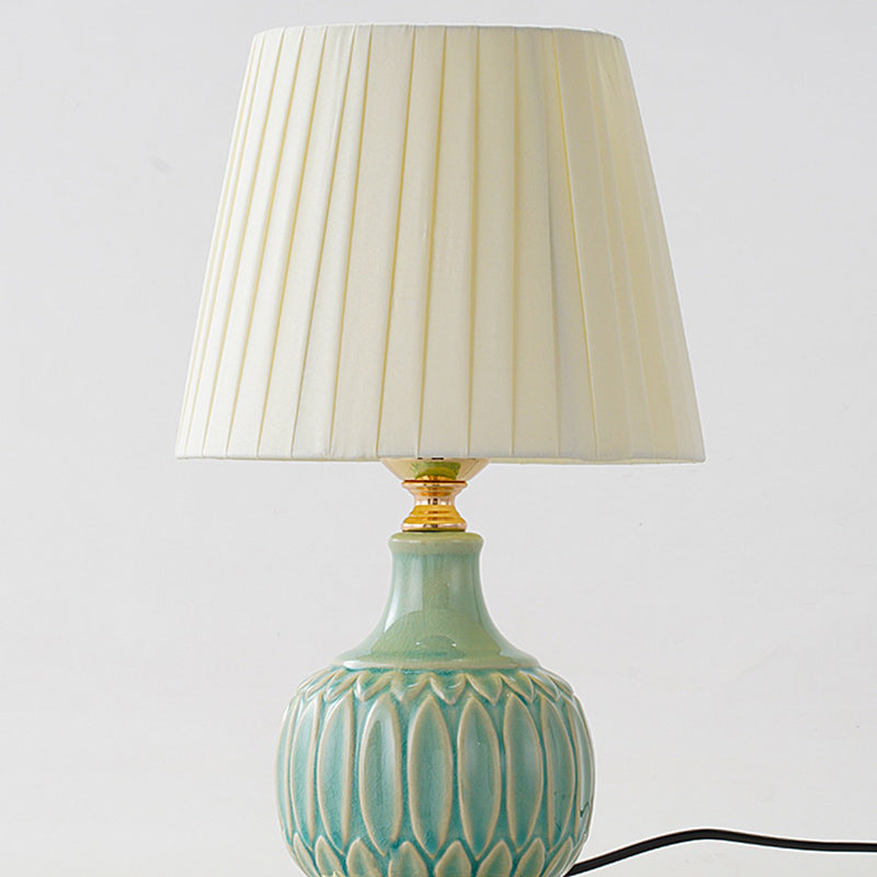 Contemporary Nordic Drum Ceramic Fabric 1-Light Table Lamp For Living Room