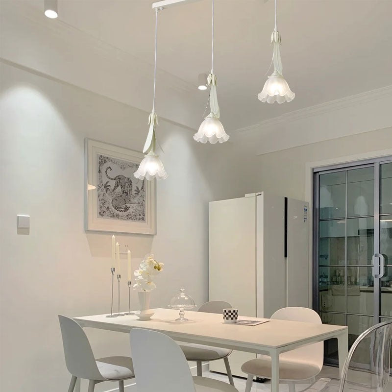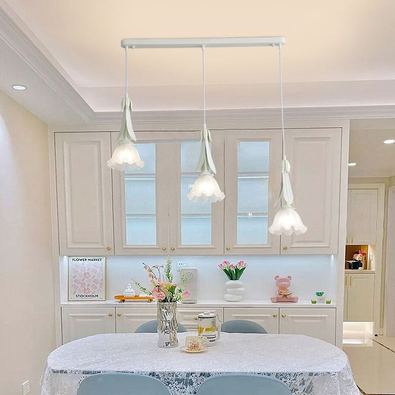 Contemporary Nordic Flowers Iron Glass Lampshade 3 - Light Chandeliers For Dining Room