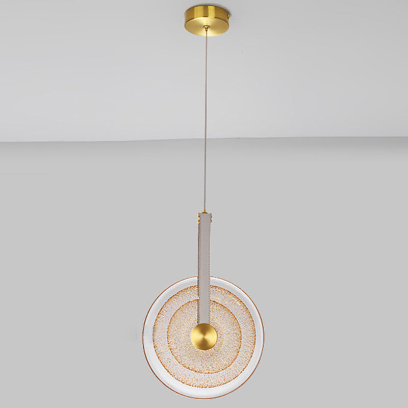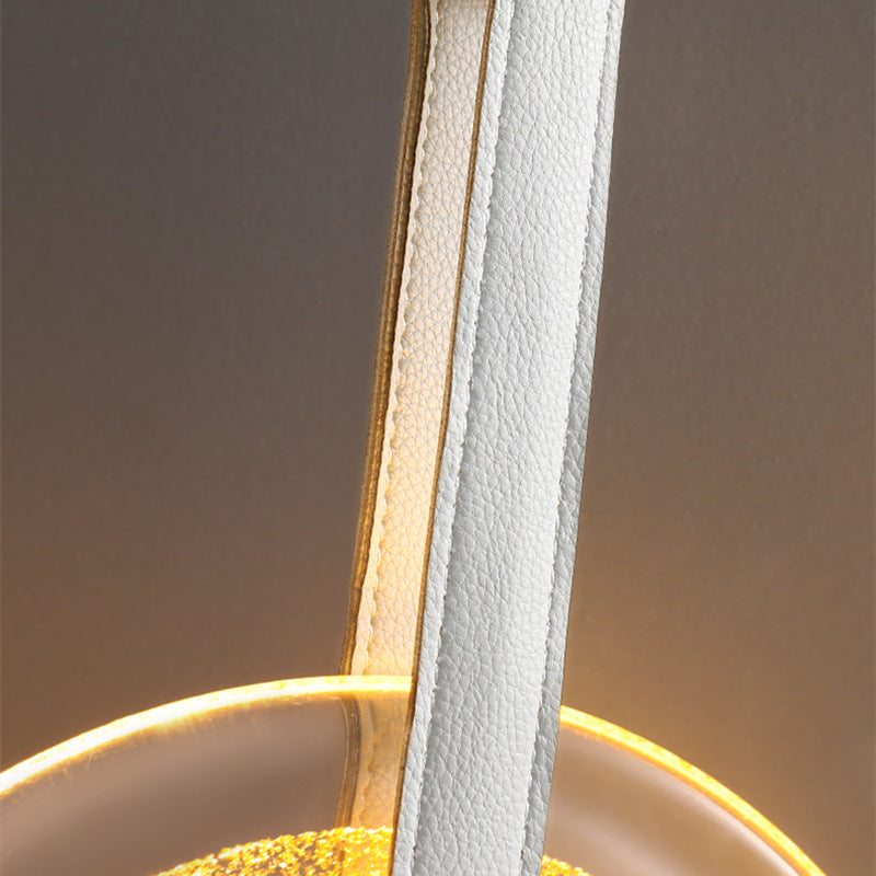 Contemporary Nordic Glass Iron Leather Round Long LED Pendant Light For Bedroom & Living Room