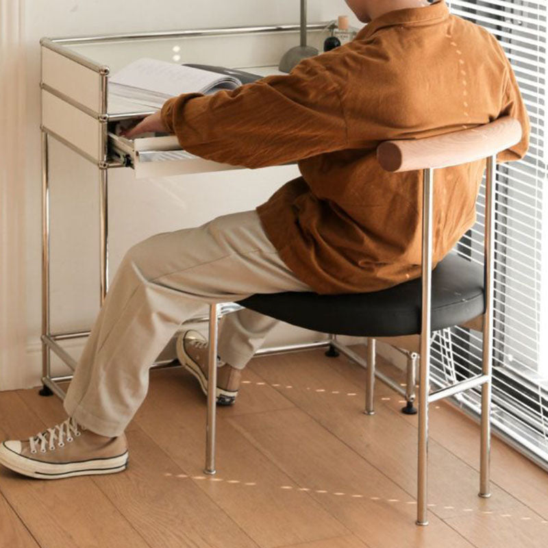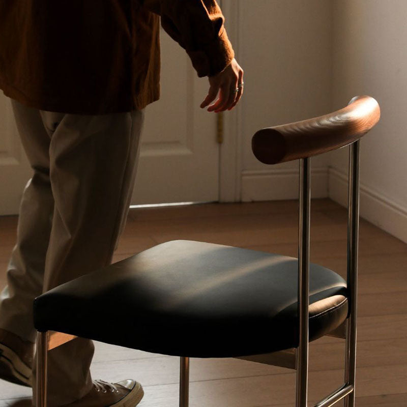 Contemporary Nordic Half Round Microfiber Leather Metal Wood Curved Backrest Dining Chair For Dining Room