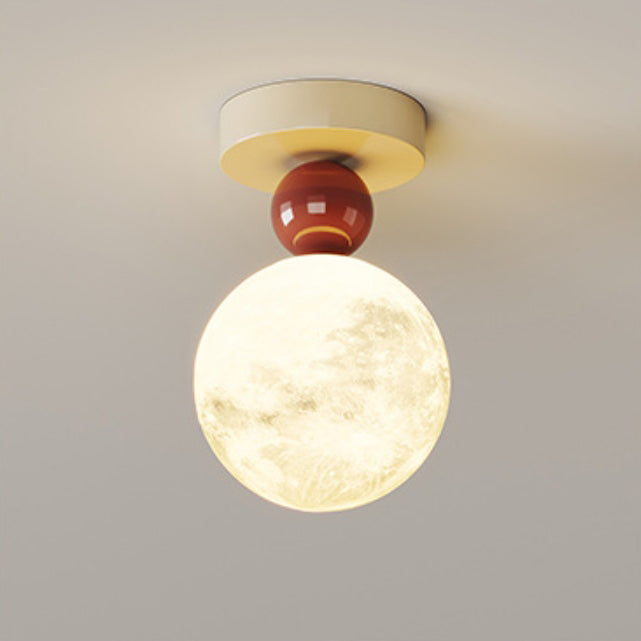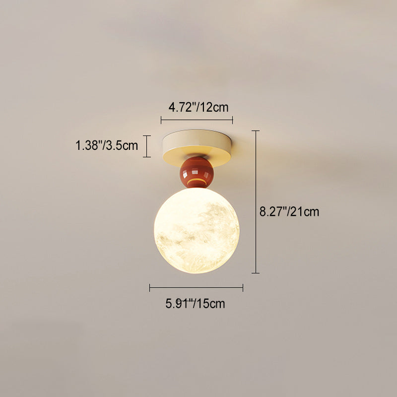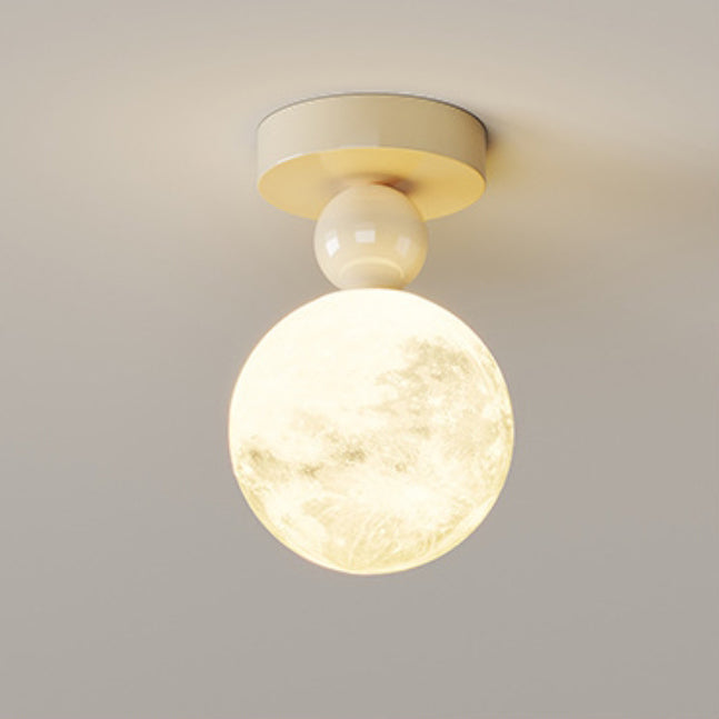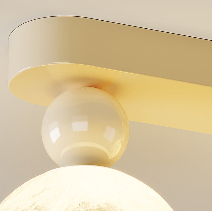 Contemporary Nordic Iron 3D Printed Resin Moon Shade 1-Light Semi-Flush Mount Ceiling Light For Living Room