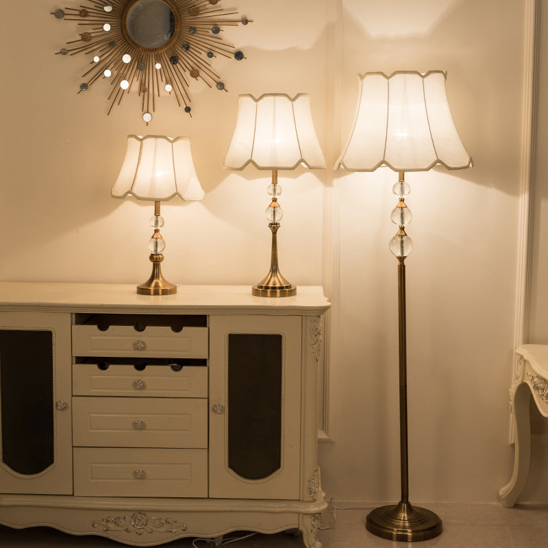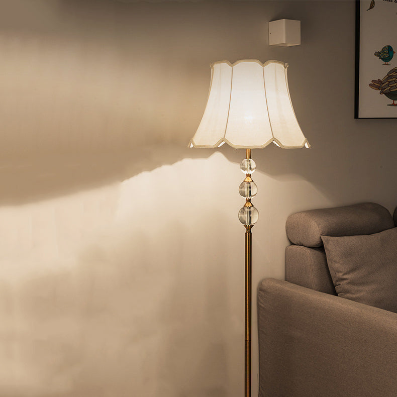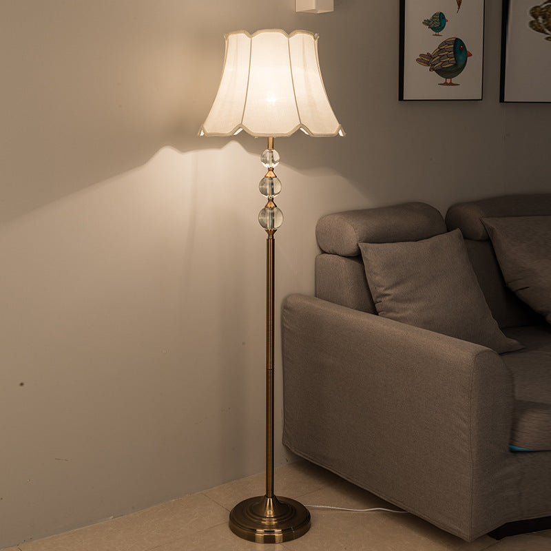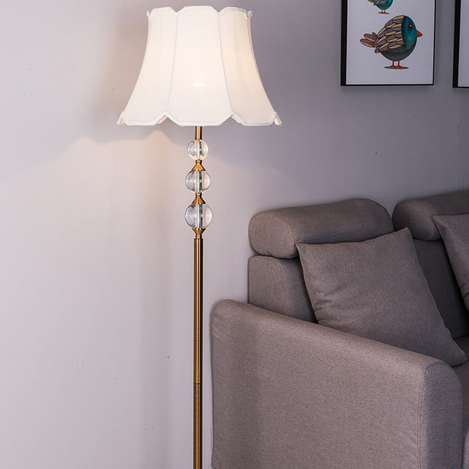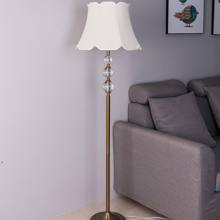 Contemporary Nordic Iron Fabric Crystal Ball Drum 1-Light Standing Floor Lamp For Living Room