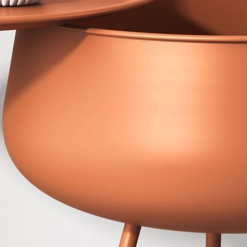 This sleek round nightstand features a minimalist iron design with one built-in storage compartment, perfect for bedrooms or living spaces. Available in black, gold, and orange, it blends modern Nordic style with practical functionality.