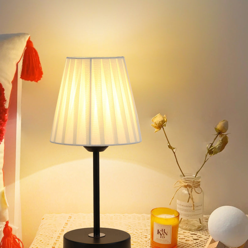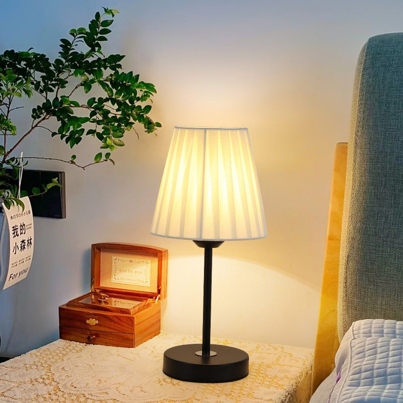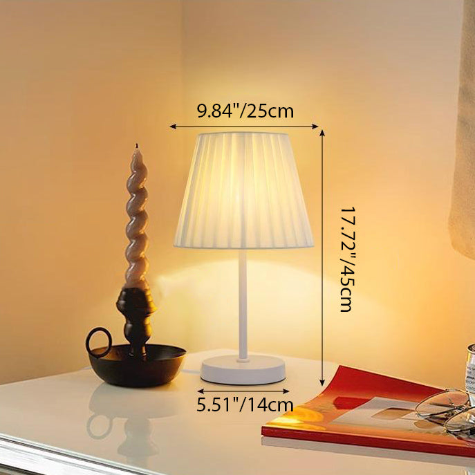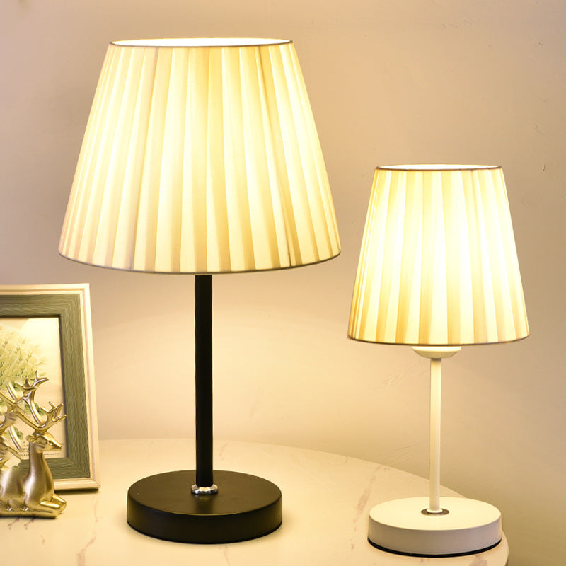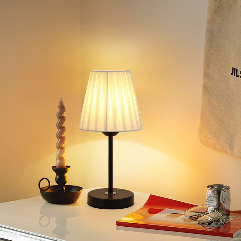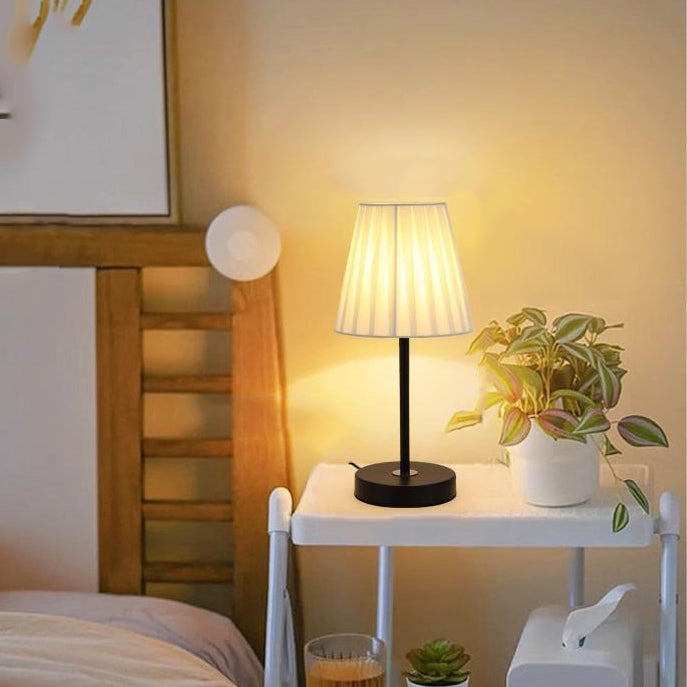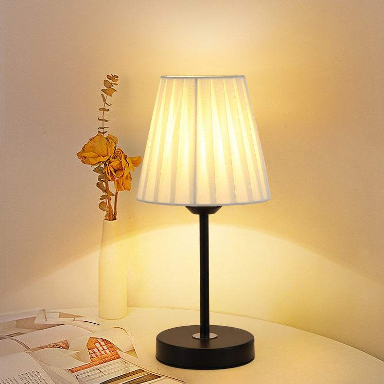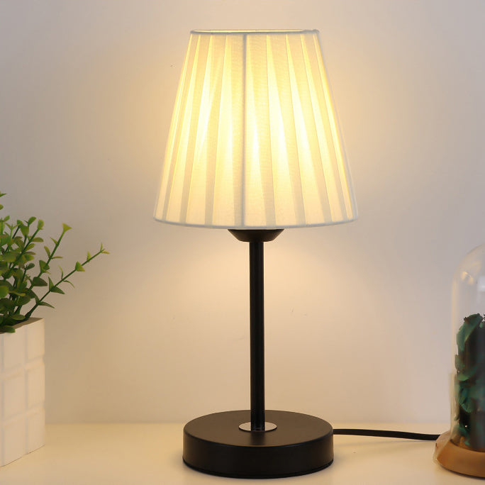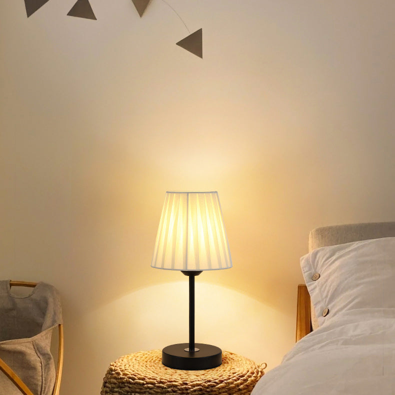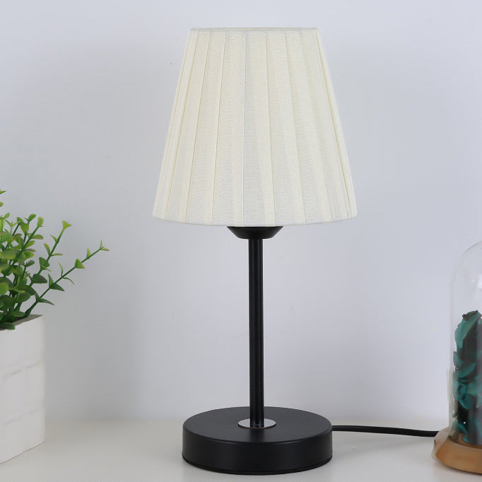 Contemporary Nordic Pleated Drum Shade Fabric Iron 1-Light Table Lamp For Bedroom