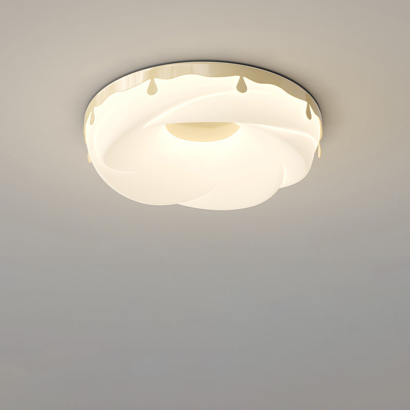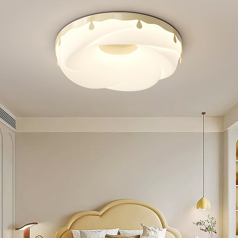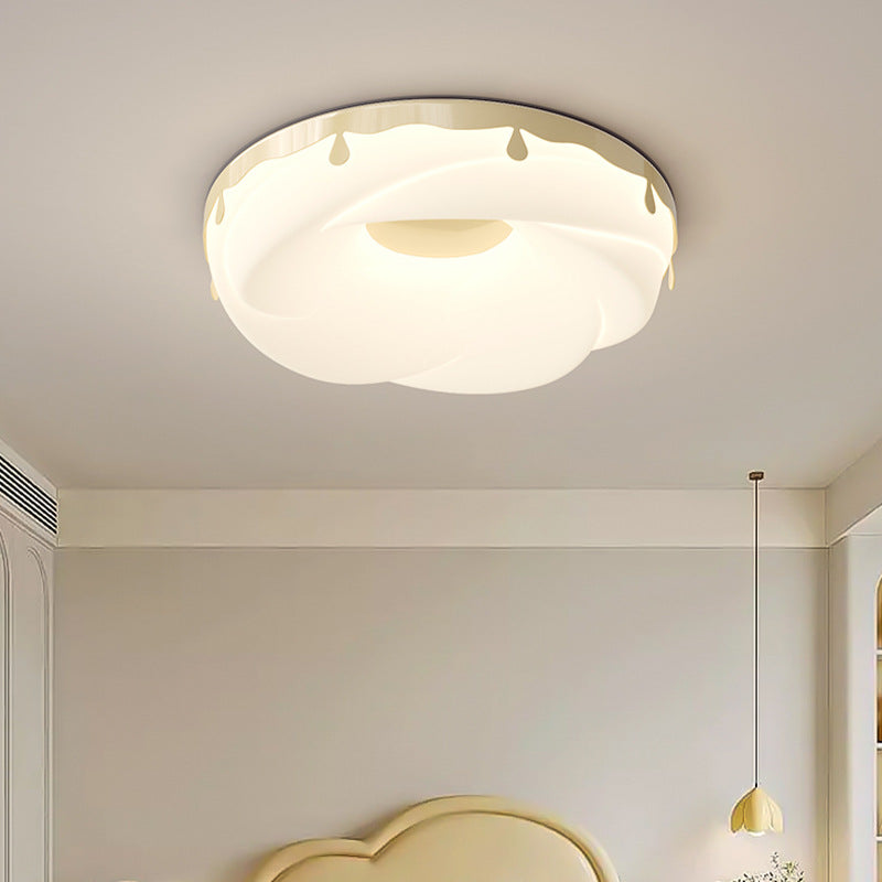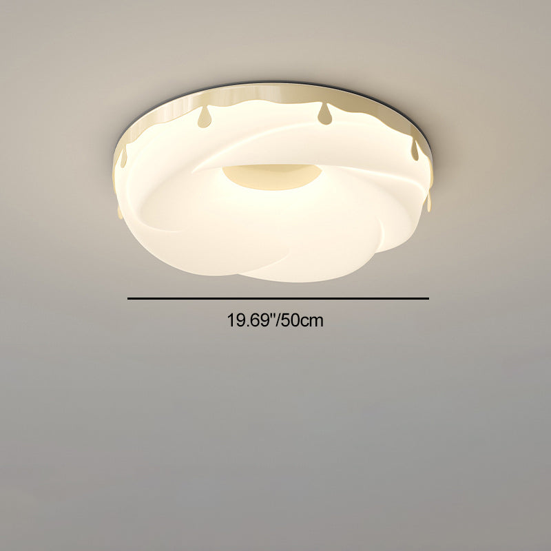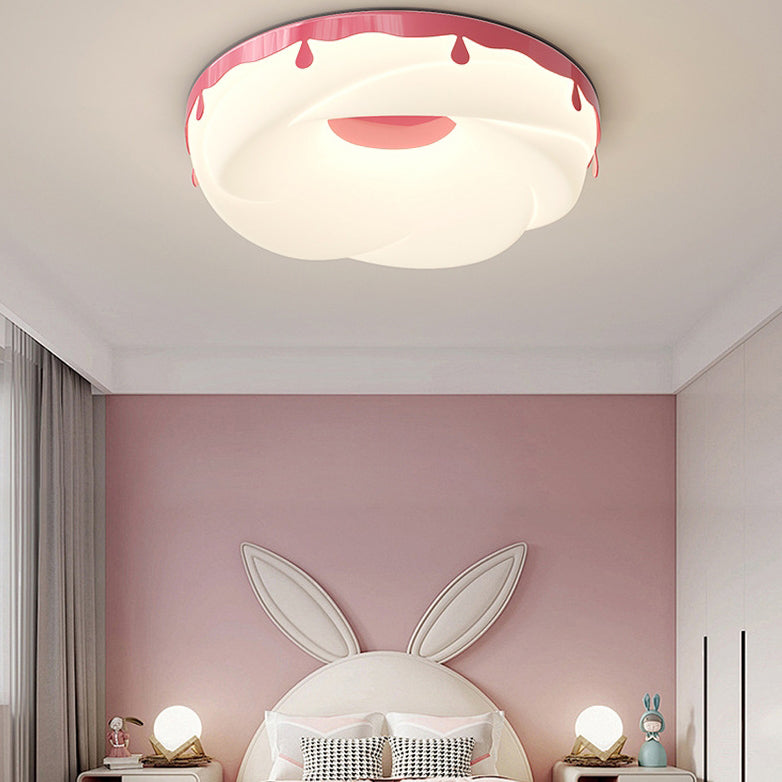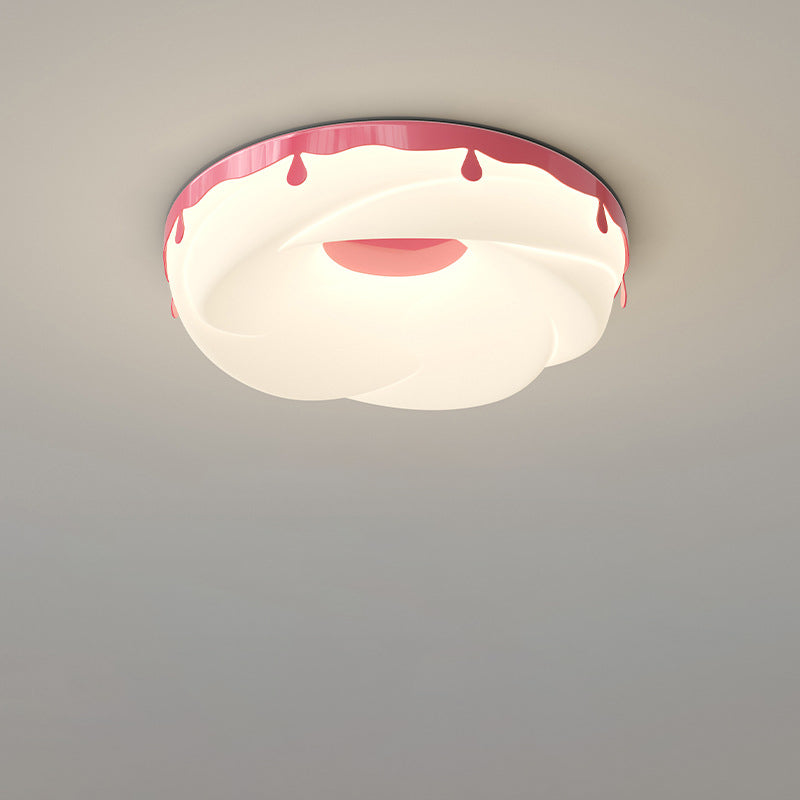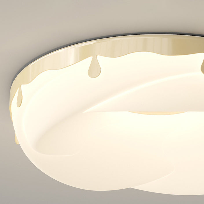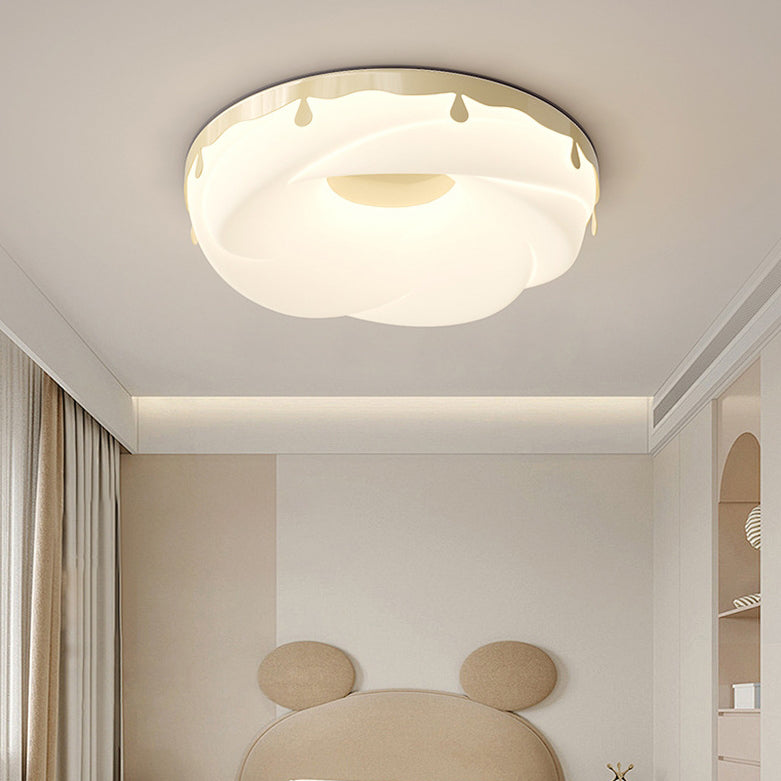 Contemporary Nordic Round Cream Donut Roto-molding Hardware Lampshade LED Flush Mount Ceiling Light For Bedroom