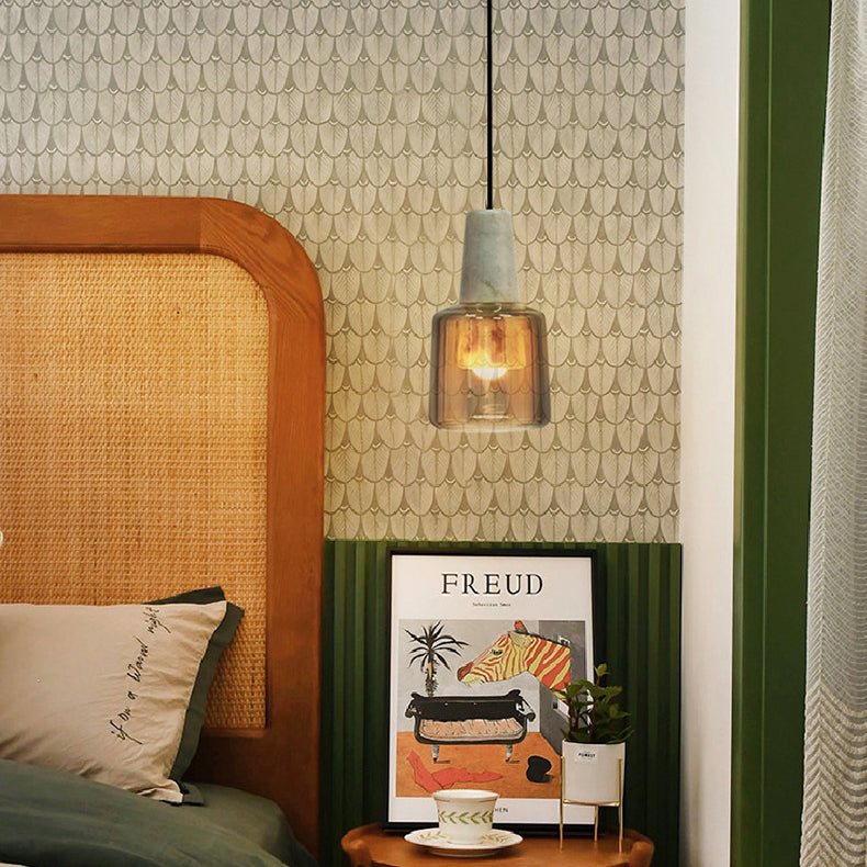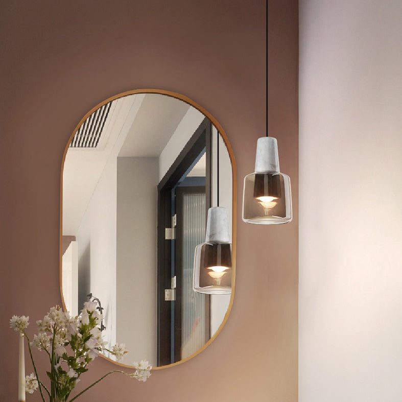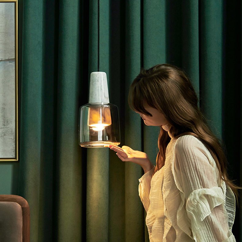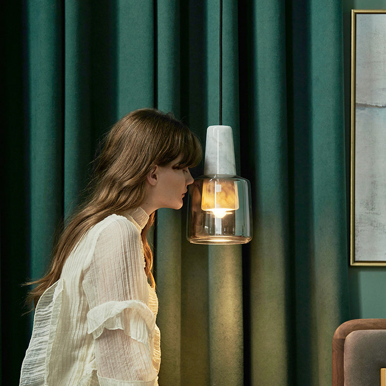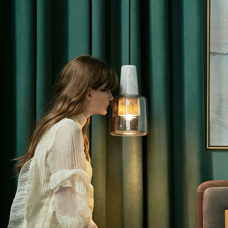 Contemporary Nordic Round Cylinder Marble Glass Shade 1-Light Pendant Light For Living Room
