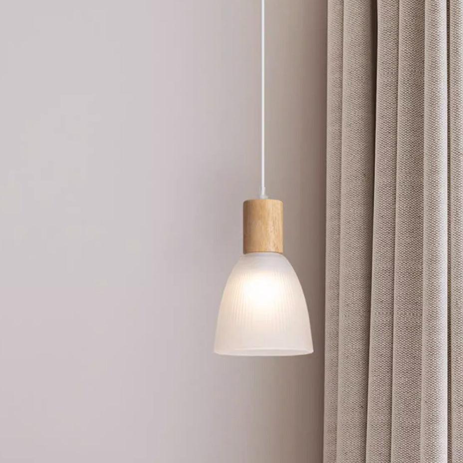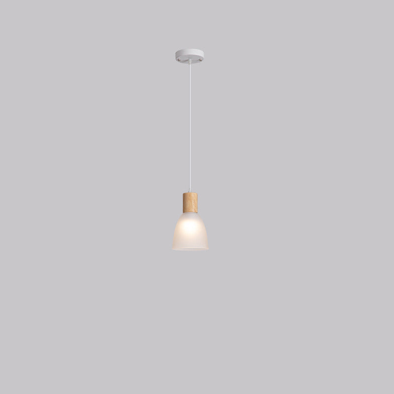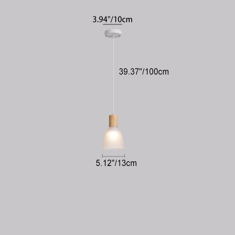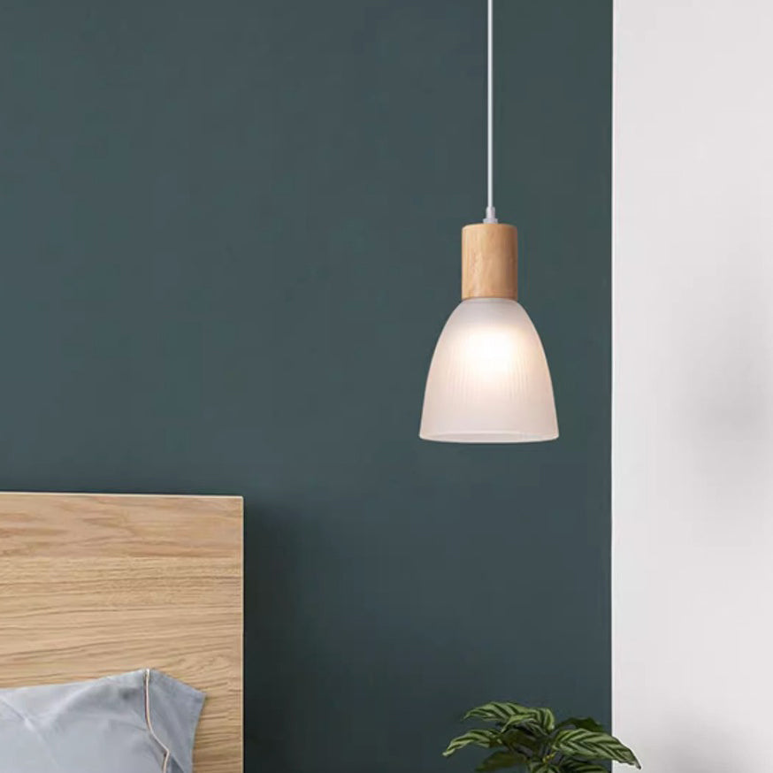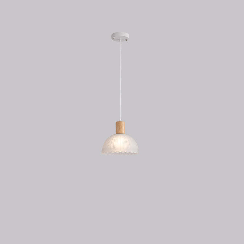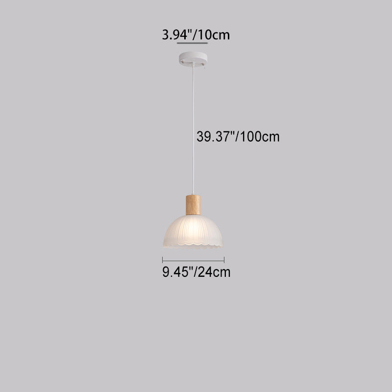 Contemporary Nordic Round Dome Wood Glass Shade 1-Light Pendant Light For Living Room