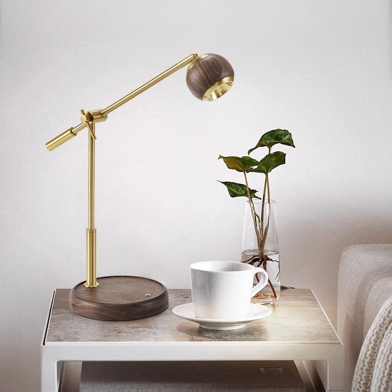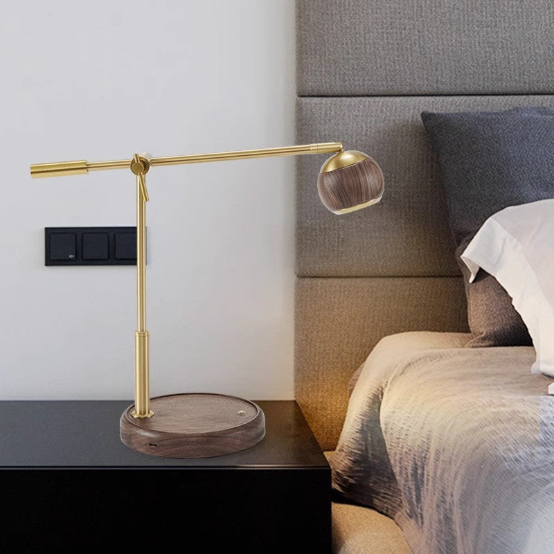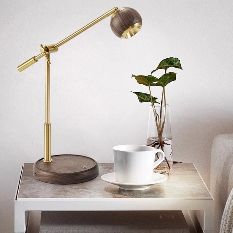 Contemporary Nordic Sphere Black Walnut Aluminum LED Table Lamp For Bedroom