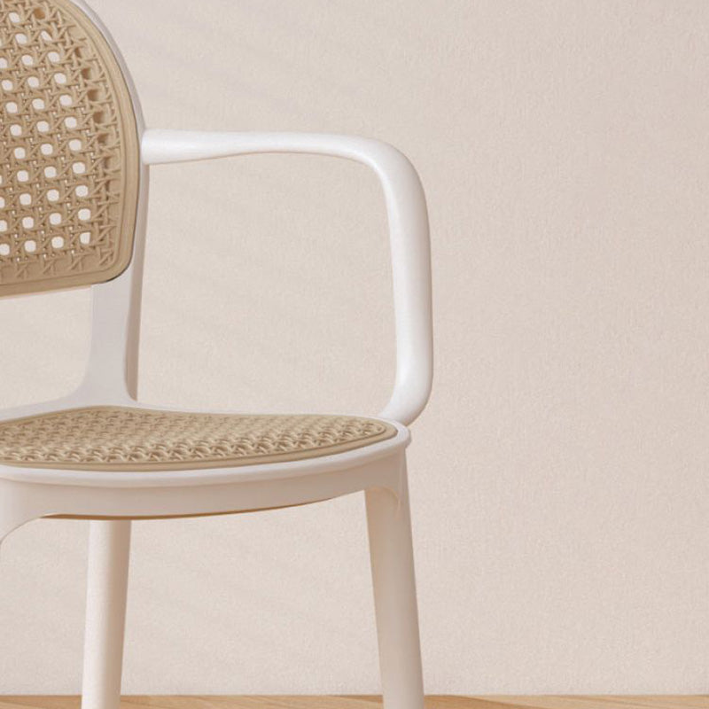 Contemporary Nordic Square Rattan Plastic Dining Chair Backrest Armrest For Dining Room
