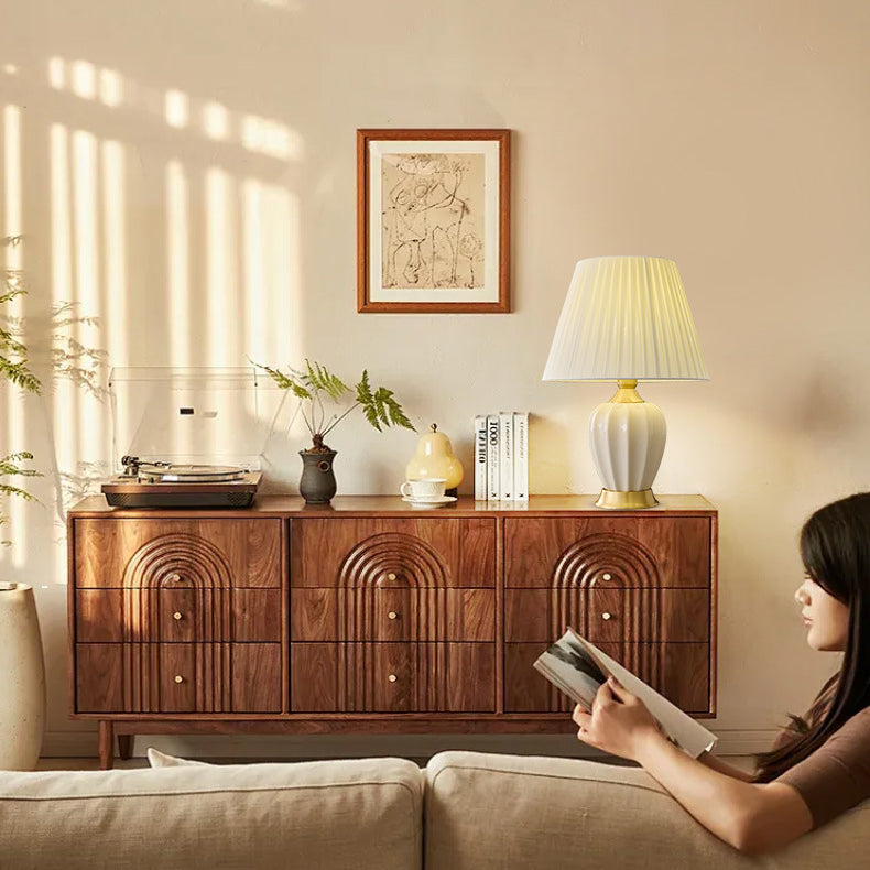 Contemporary Nordic Tapered Fabric Shade Solid Brass Ceramic 1-Light Table Lamp for Bedroom
