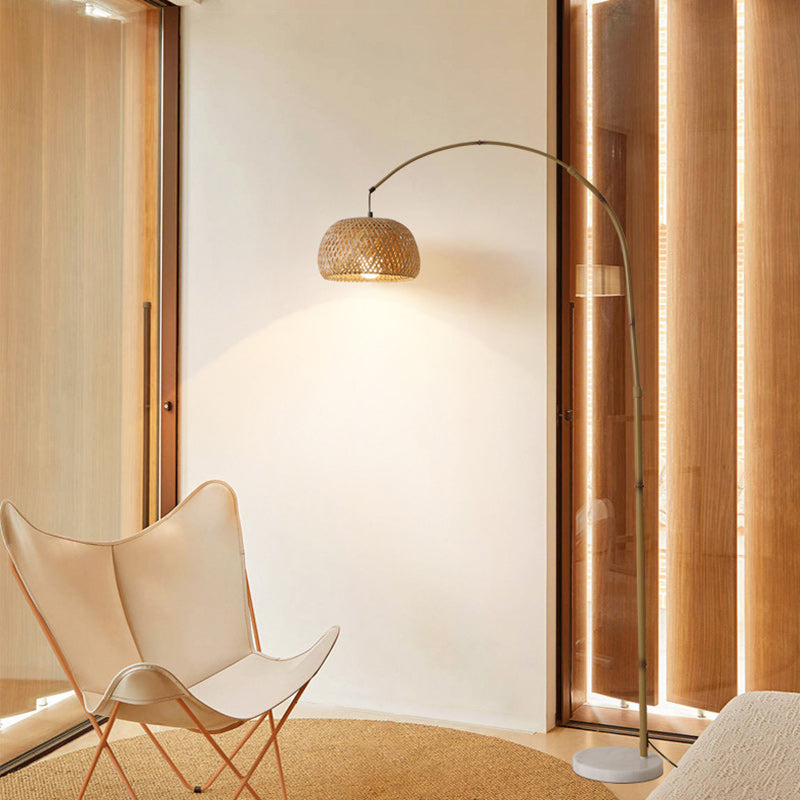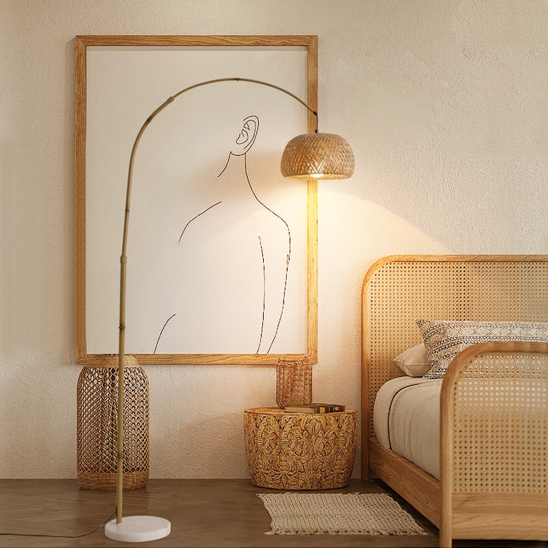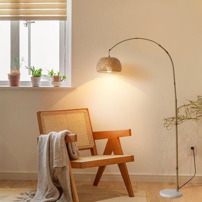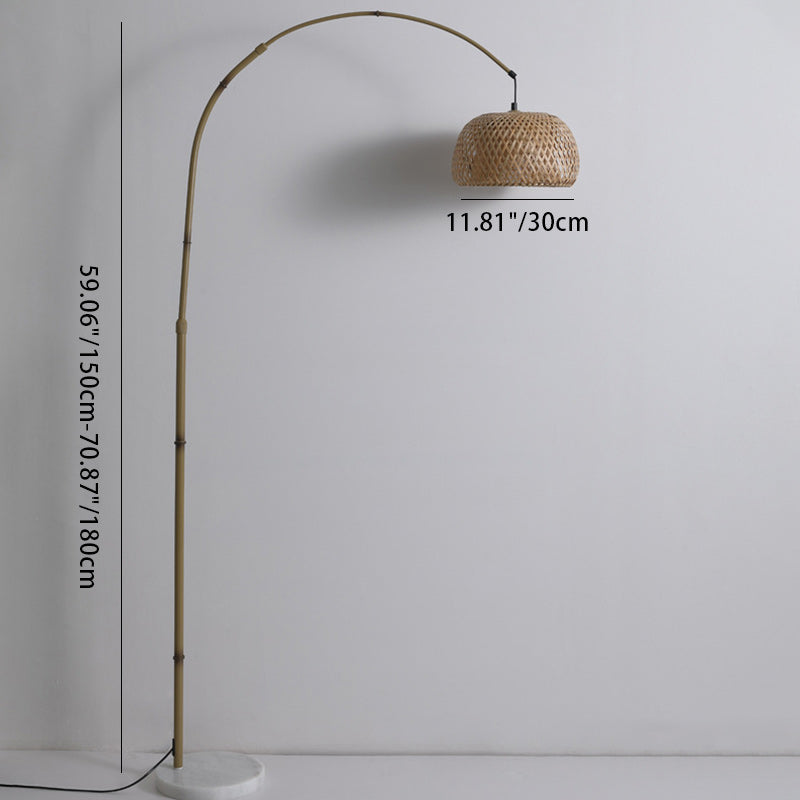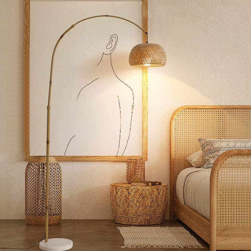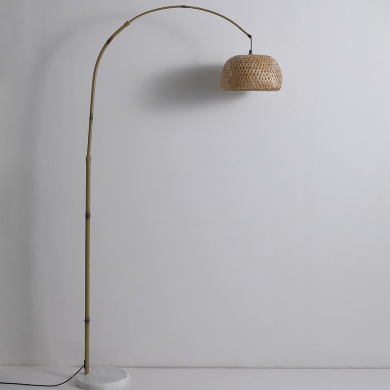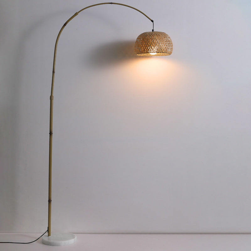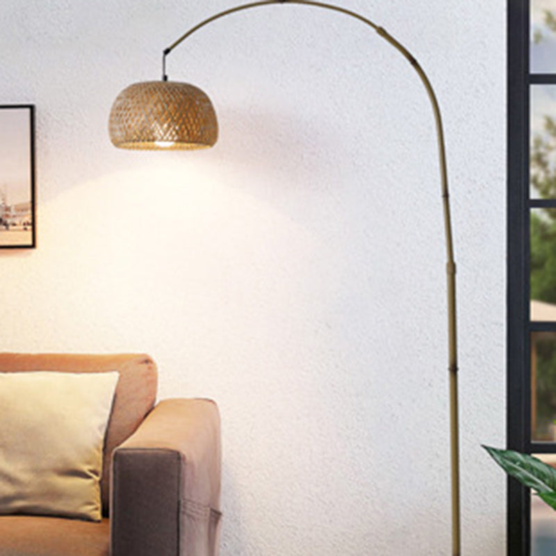 Contemporary Retro Bamboo Weaving Shade Arc 1-Light Standing Floor Lamp For Living Room