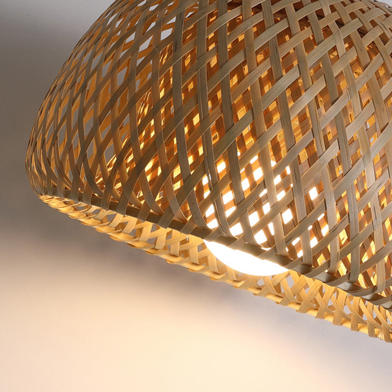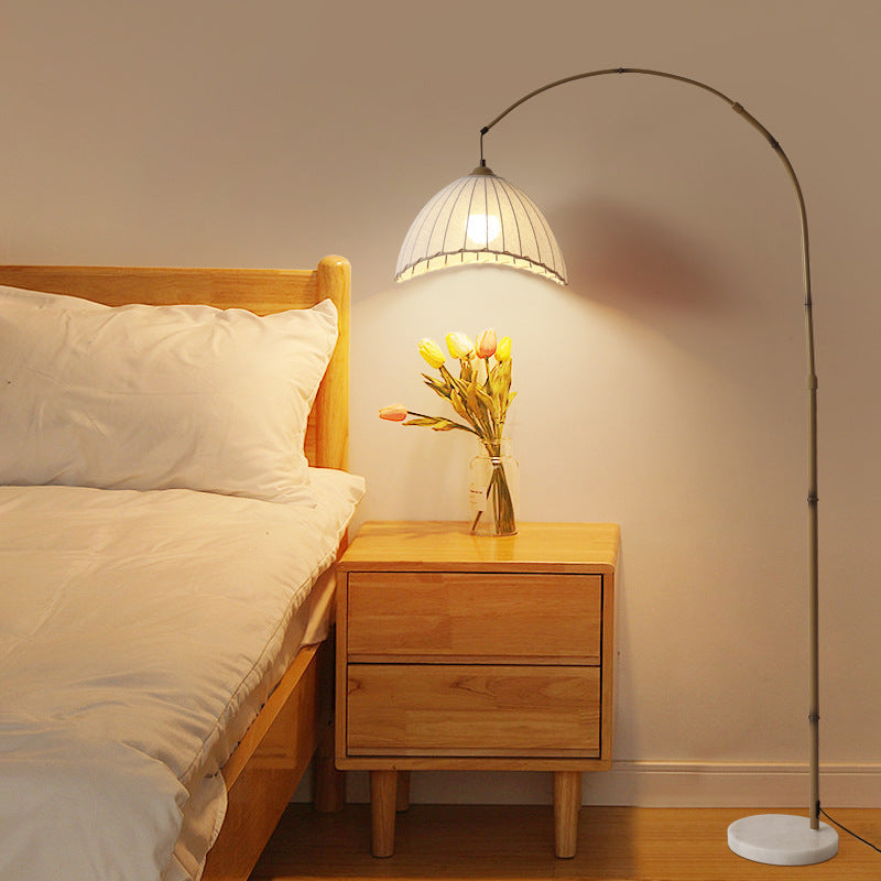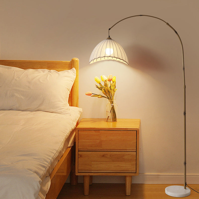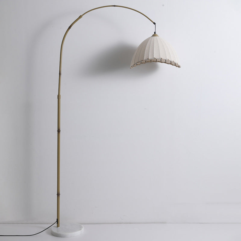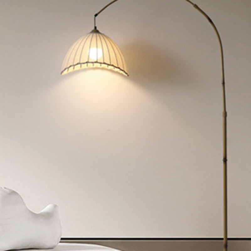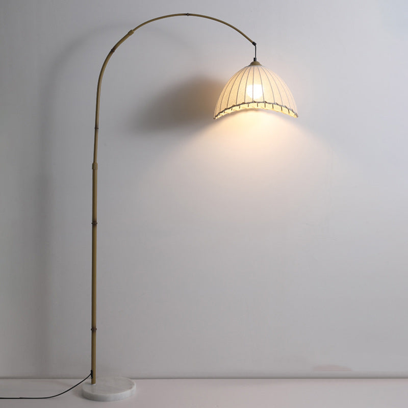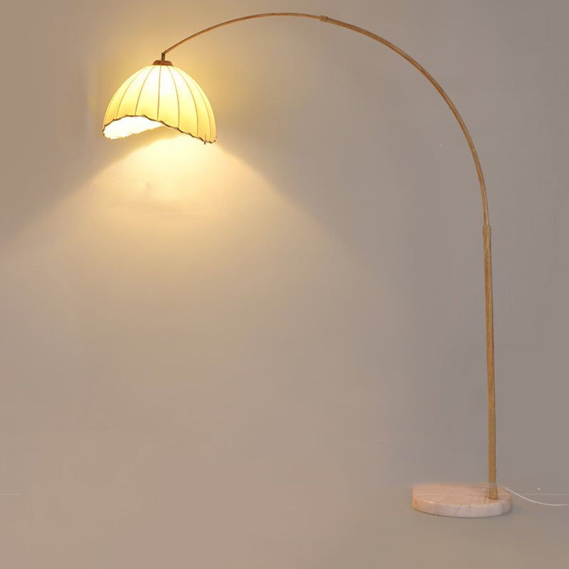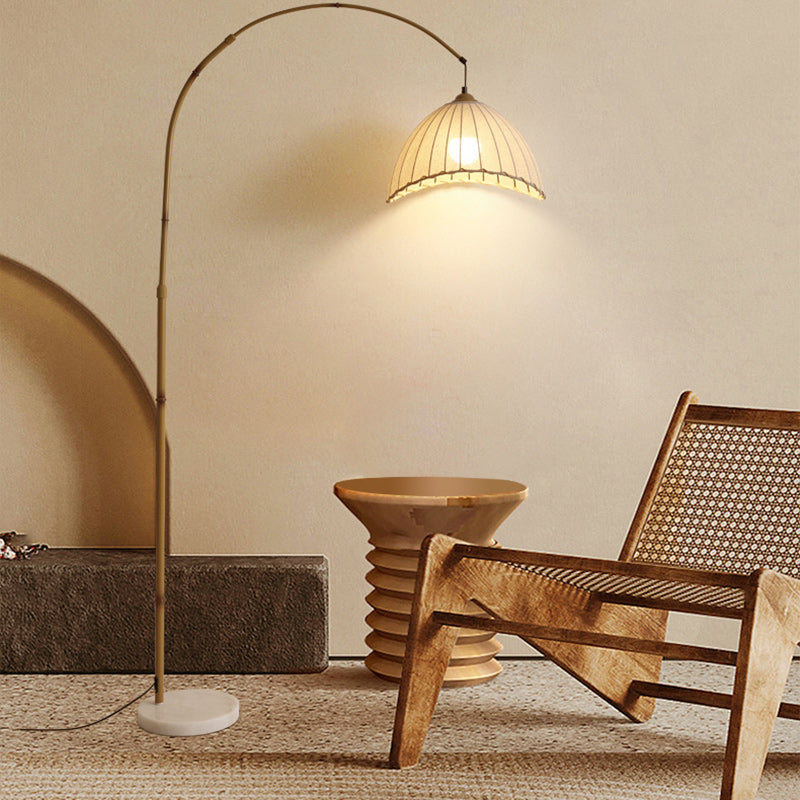 Contemporary Retro Bamboo Weaving Shade Arc 1-Light Standing Floor Lamp For Living Room