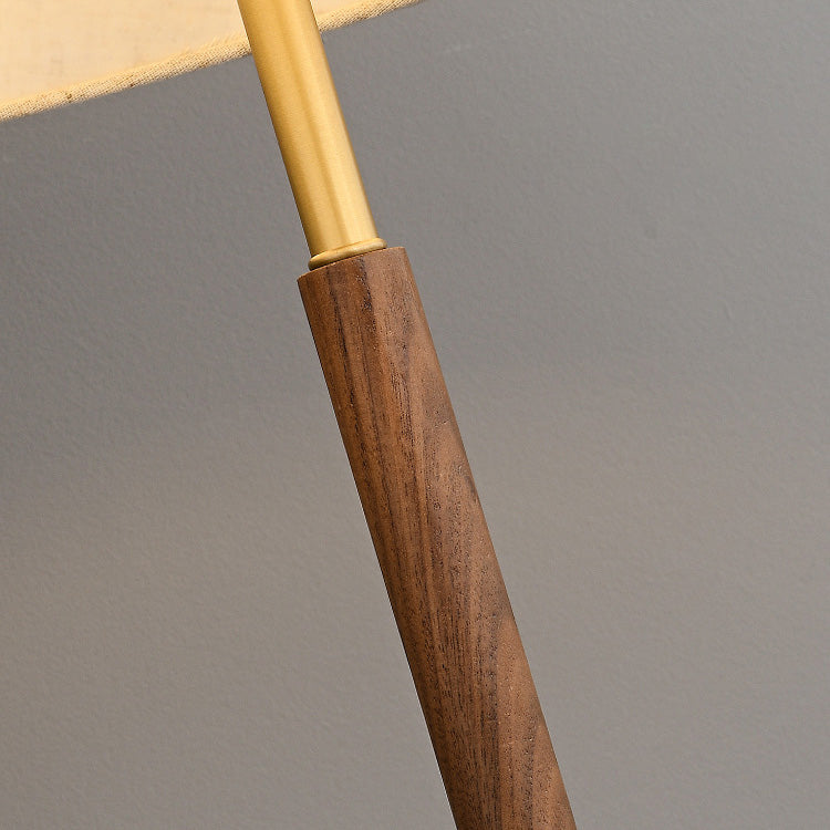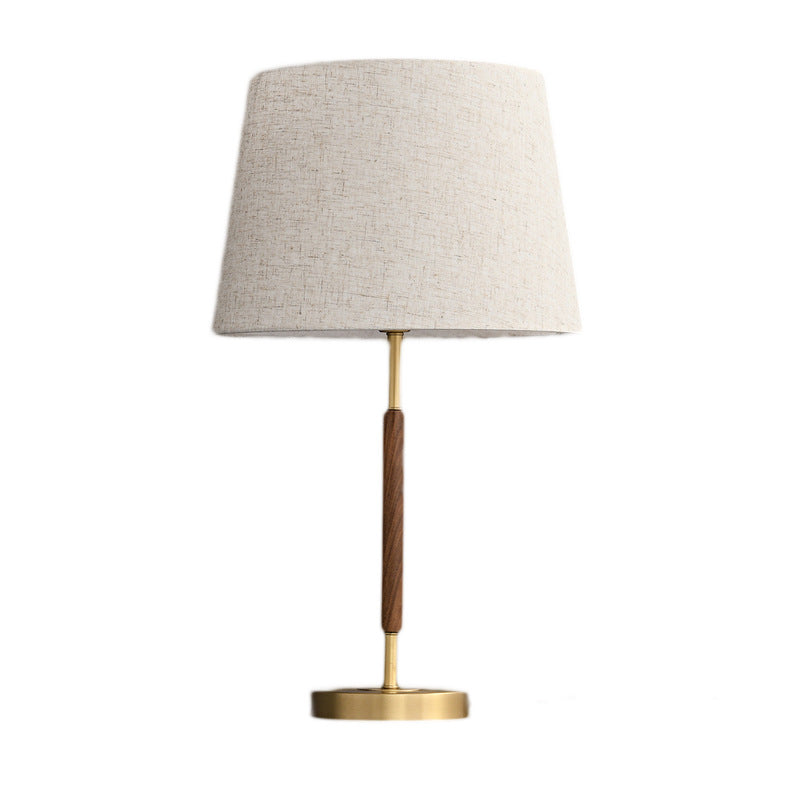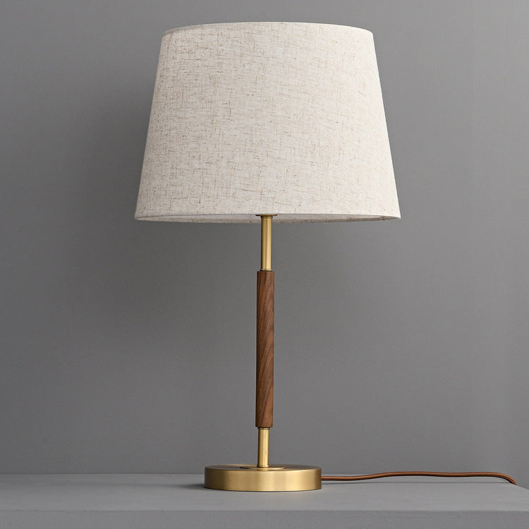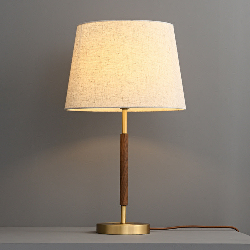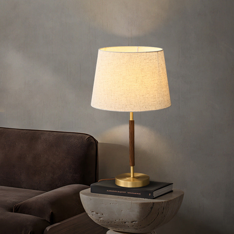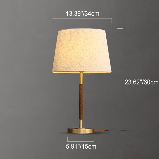 Contemporary Retro Brass Fabric Cylinder 1-Light Table Lamp For Bedside