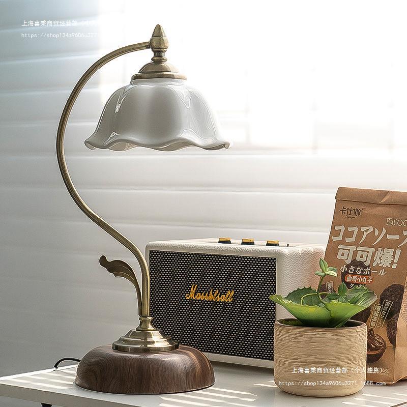 Contemporary Retro Dome Flower Iron Glass Ceramic 1-Light Table Lamp For Bedroom