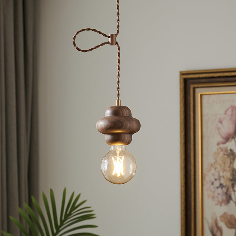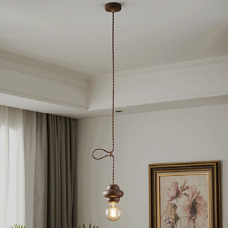 Contemporary Retro Dome Round Walnut Copper 1 - Light Pendant Light For Living Room