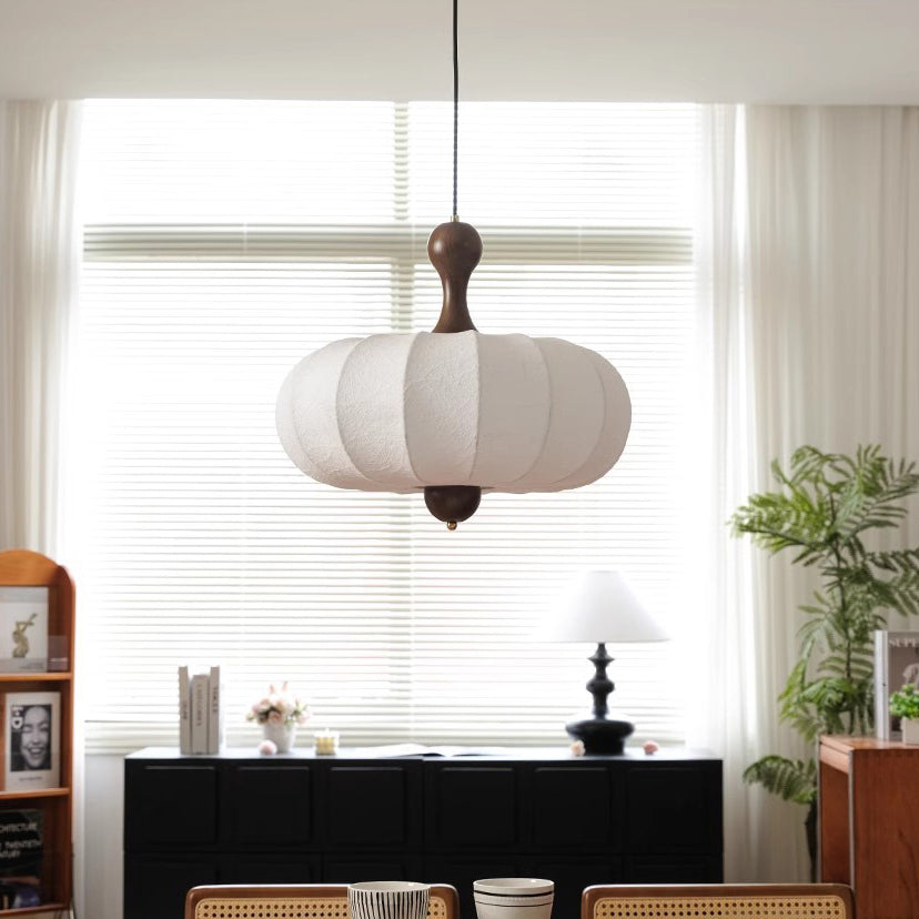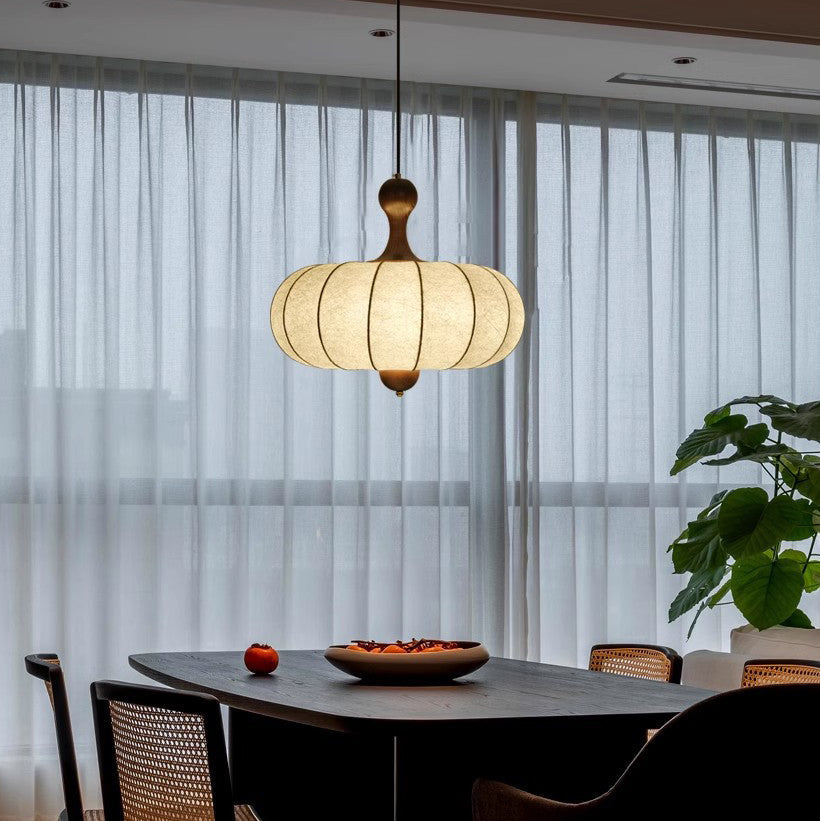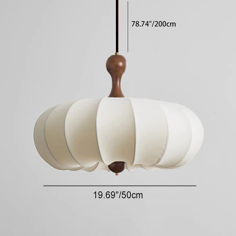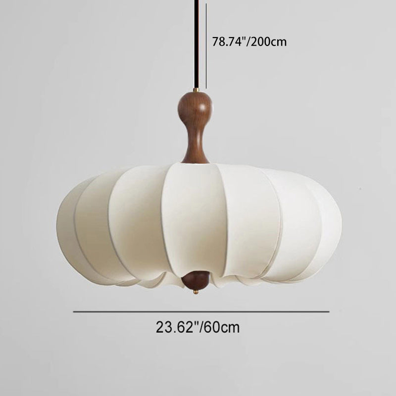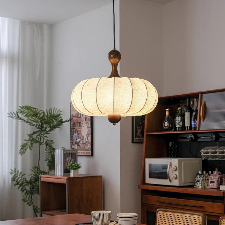 Contemporary Retro Fabric Imitation Silk Wood Pumpkin Shape 3/5-Light Pendant Light For Living Room