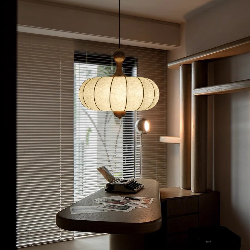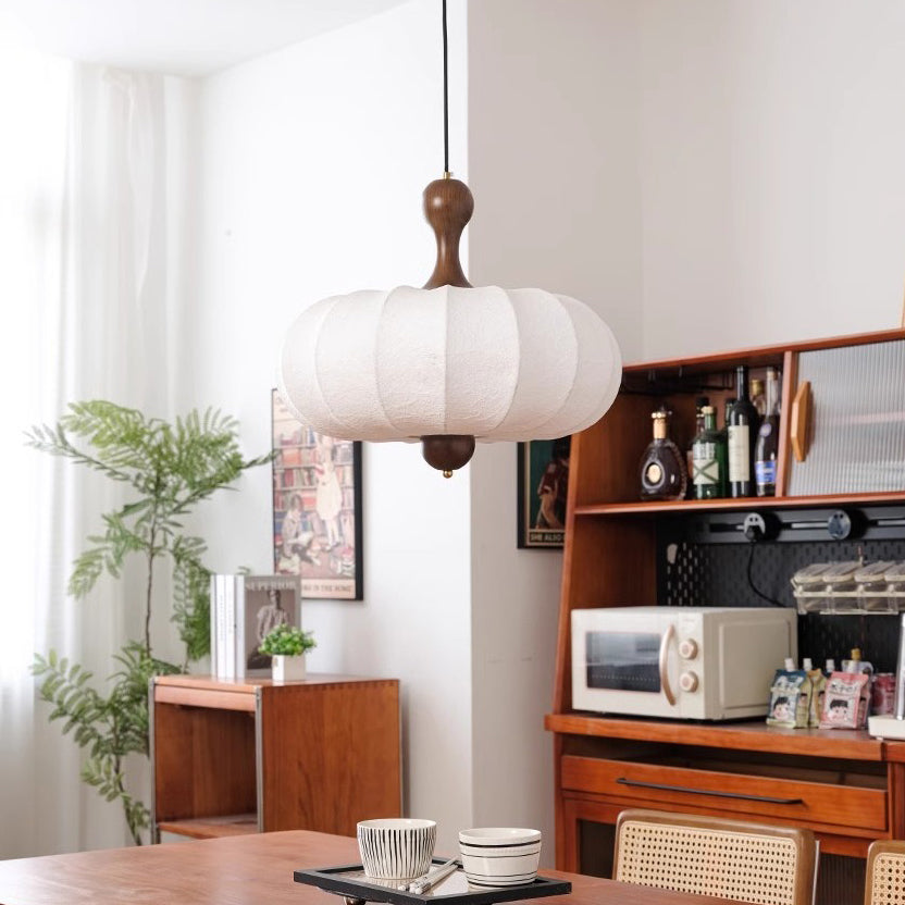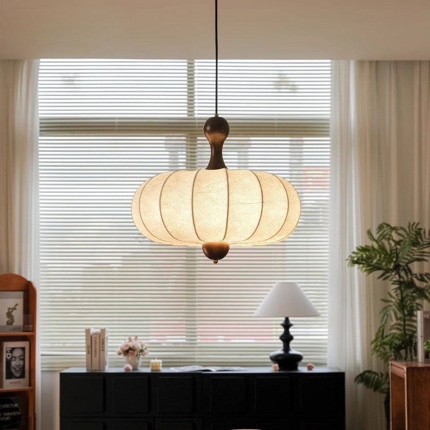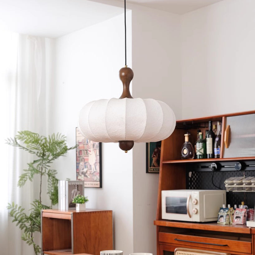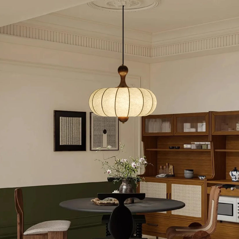 Contemporary Retro Fabric Imitation Silk Wood Pumpkin Shape 3/5-Light Pendant Light For Living Room